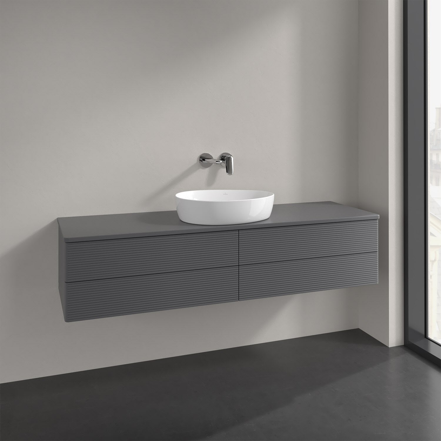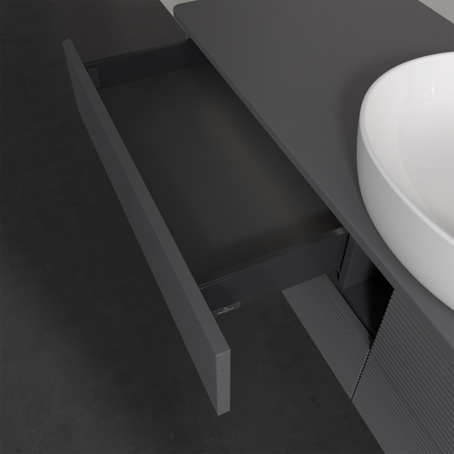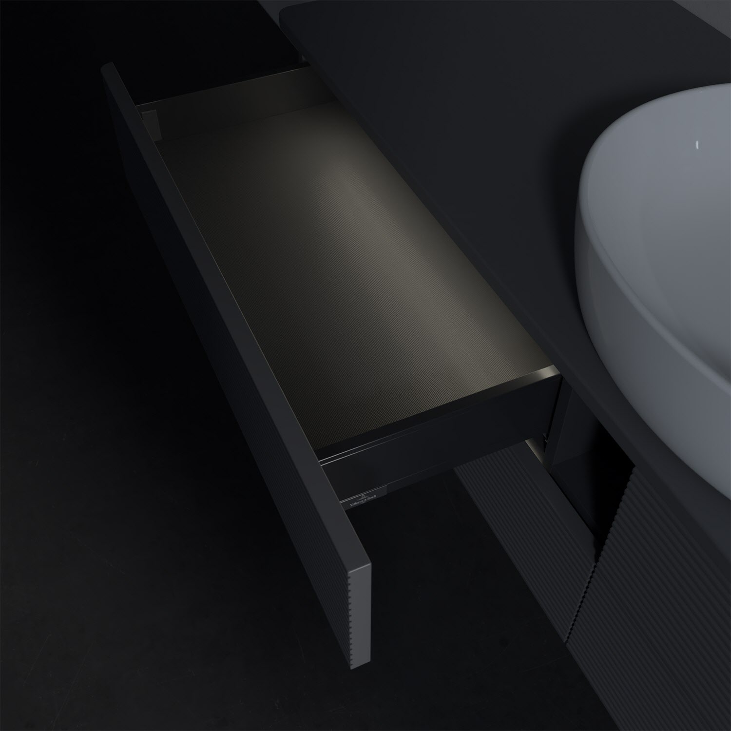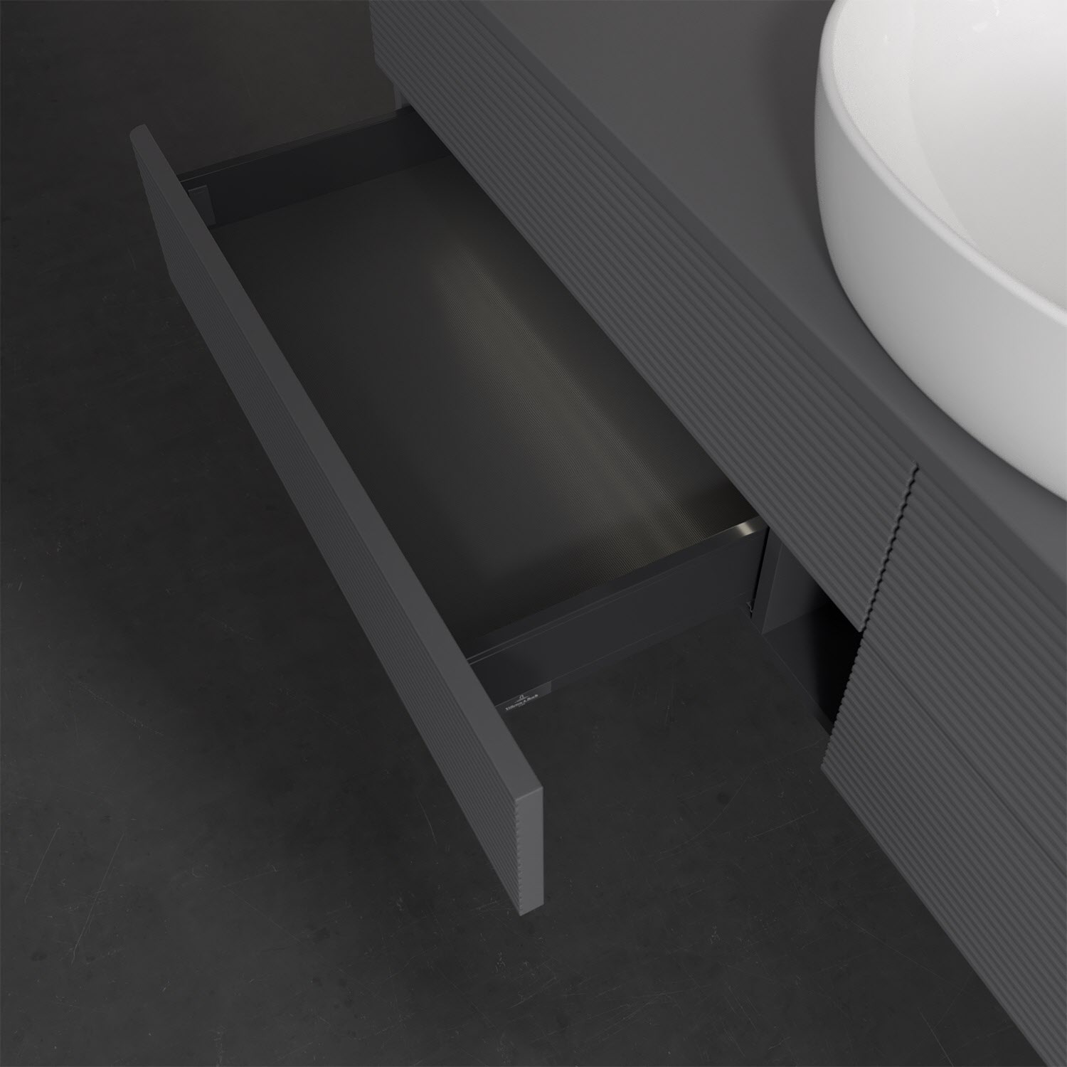 Villeroy & Boch Antao Waschbeckenunterschrank, 160 x 36 cm, 4 Auszüge mit LED-Licht, Front mit Struktur, ohne Hahnloch, für Waschtisch mittig