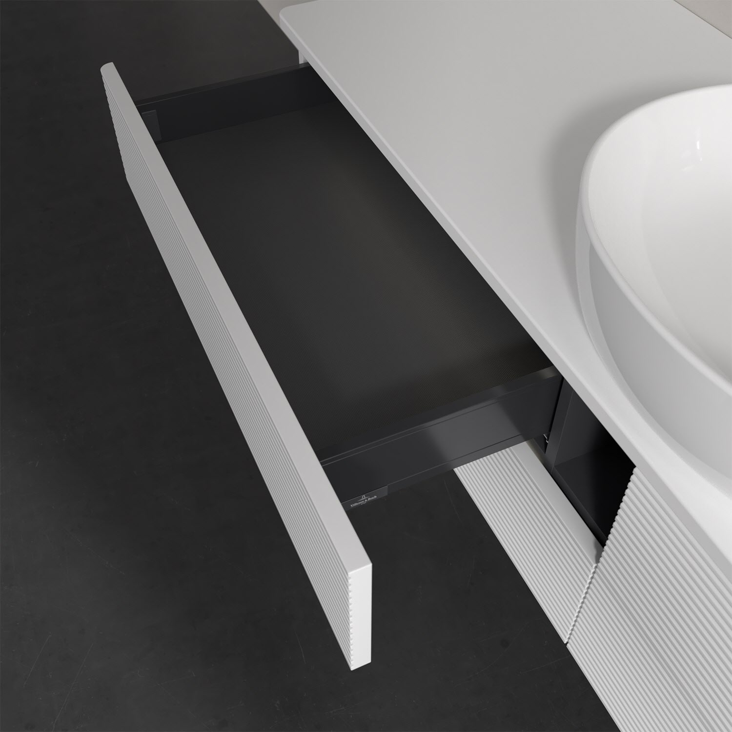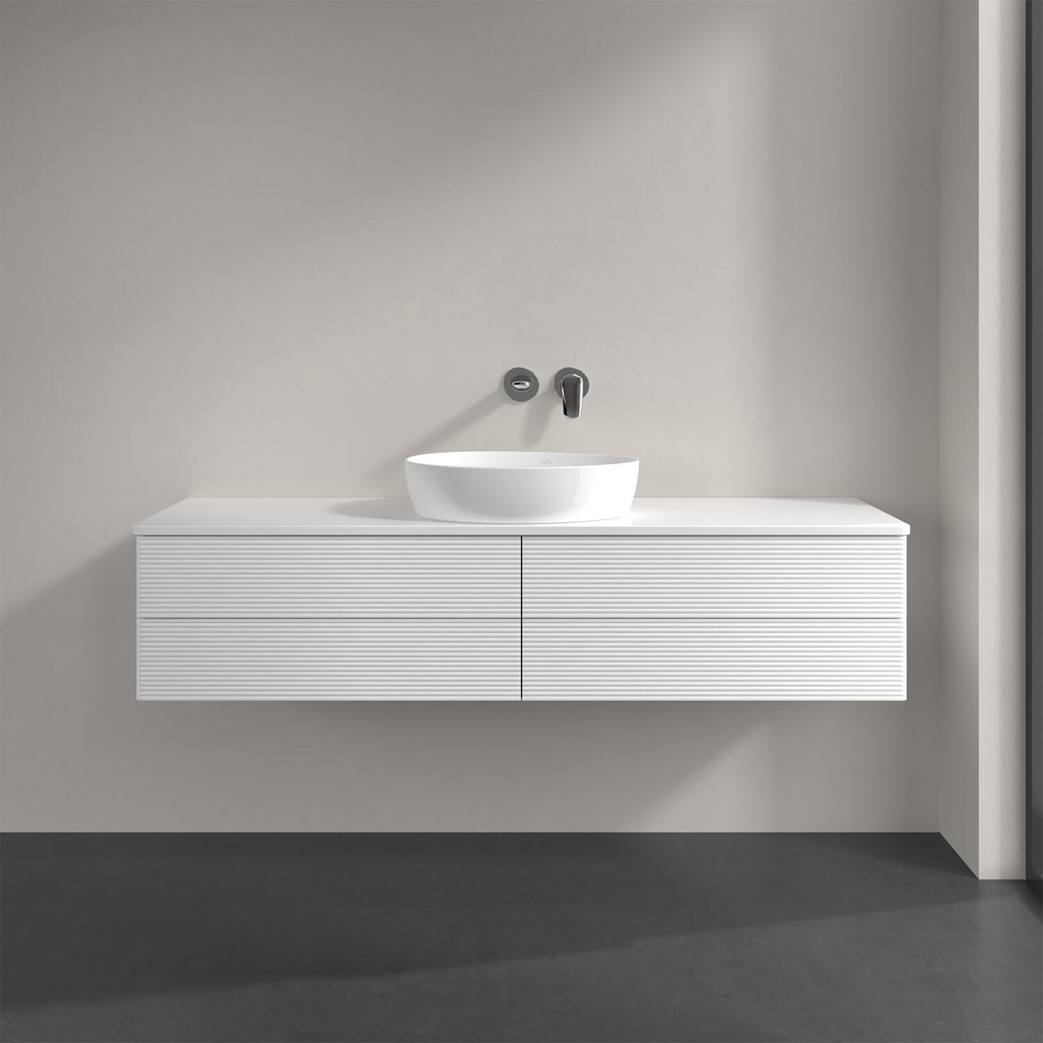 Villeroy & Boch Antao Waschbeckenunterschrank, 160 x 36 cm, 4 Auszüge mit LED-Licht, Front mit Struktur, ohne Hahnloch, für Waschtisch mittig