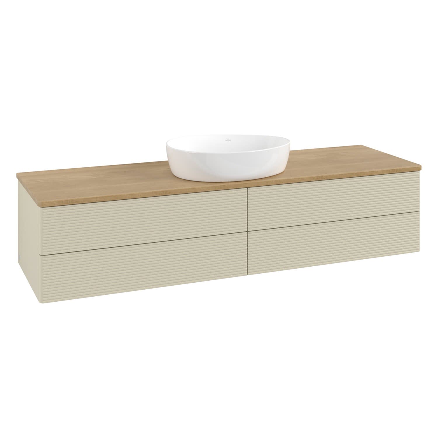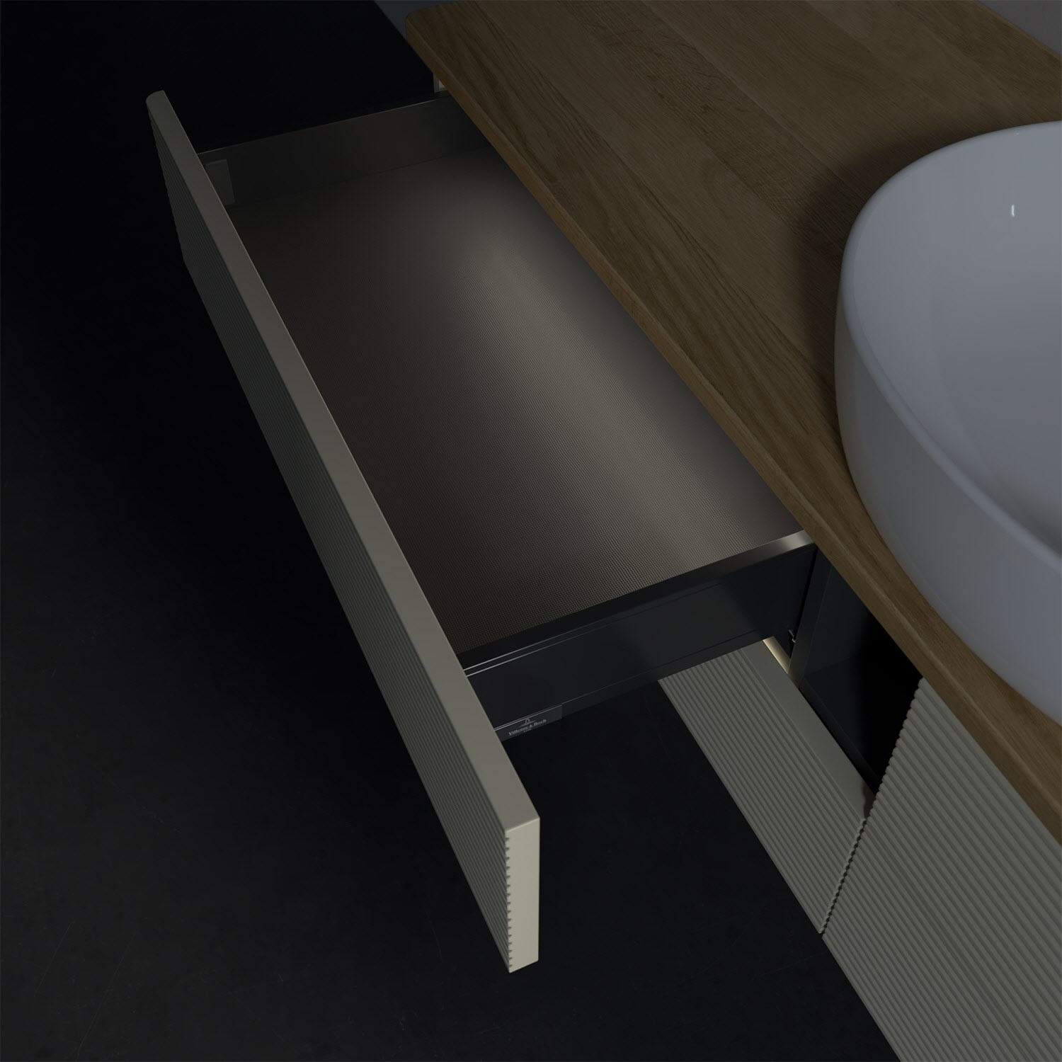 Villeroy & Boch Antao Waschbeckenunterschrank, 160 x 36 cm, 4 Auszüge mit LED-Licht, Front mit Struktur, ohne Hahnloch, für Waschtisch mittig