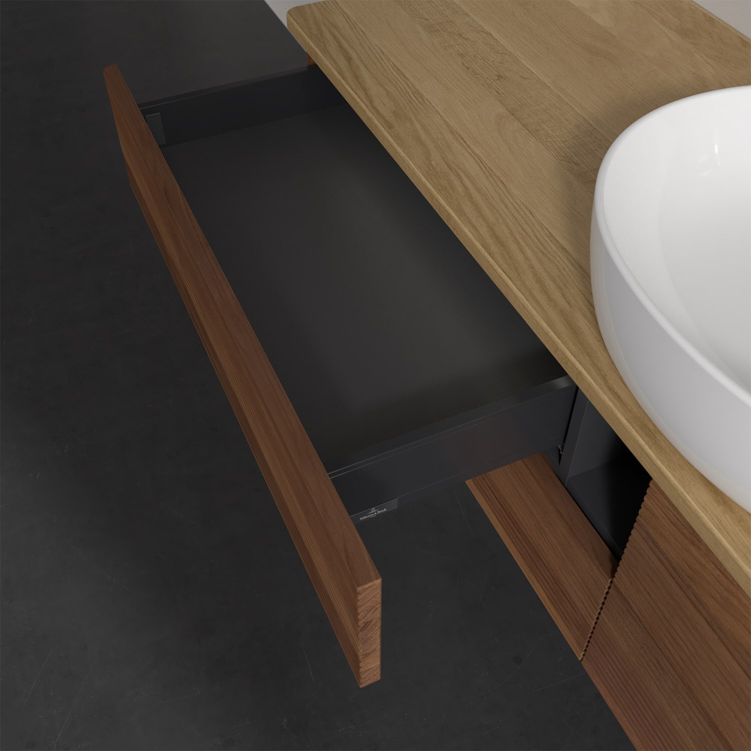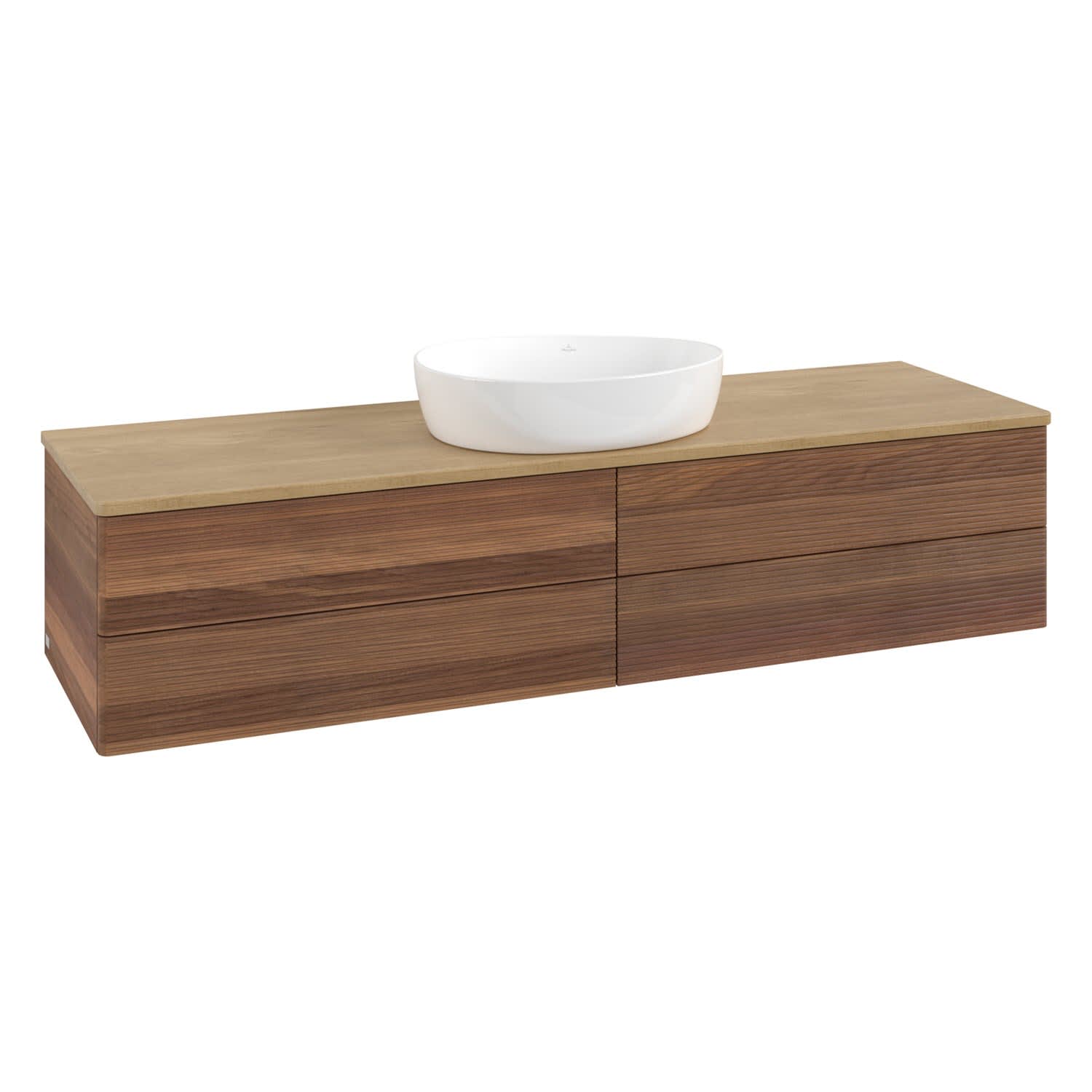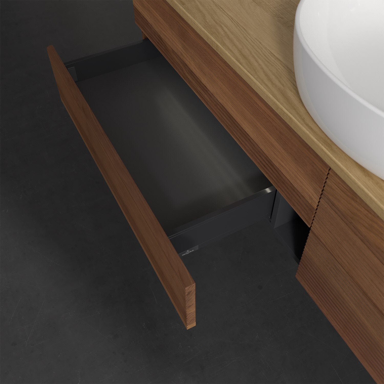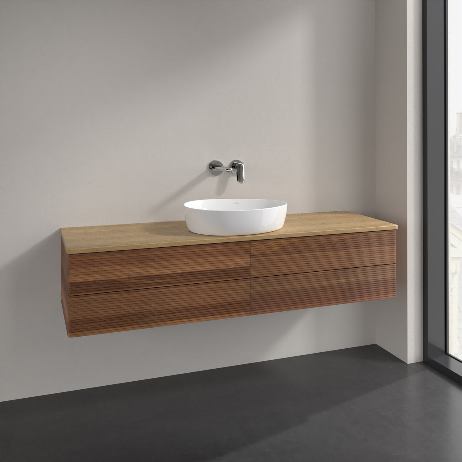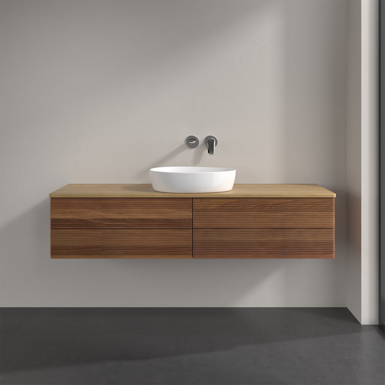 Villeroy & Boch Antao Waschbeckenunterschrank, 160 x 36 cm, 4 Auszüge mit LED-Licht, Front mit Struktur, ohne Hahnloch, für Waschtisch mittig