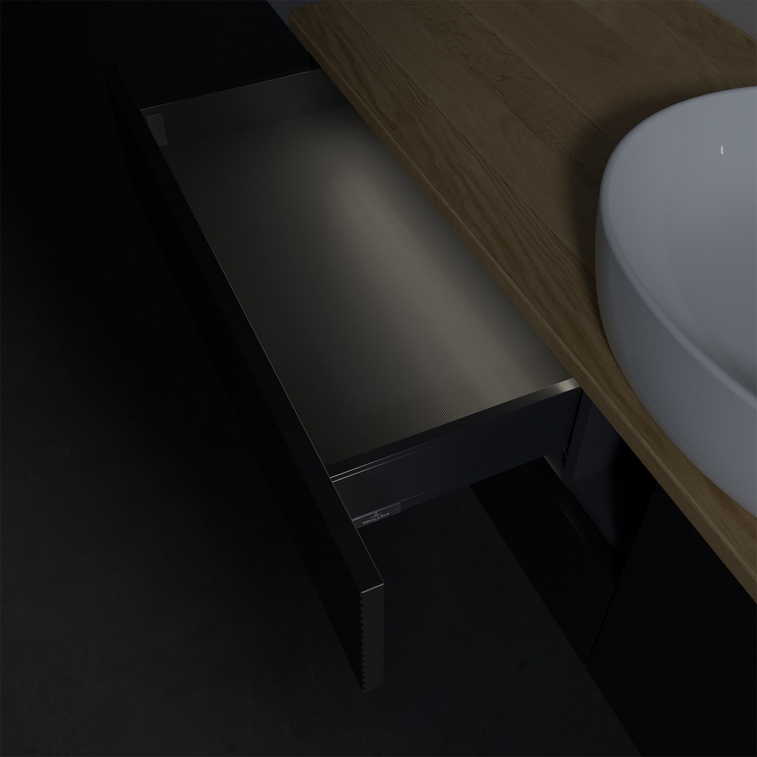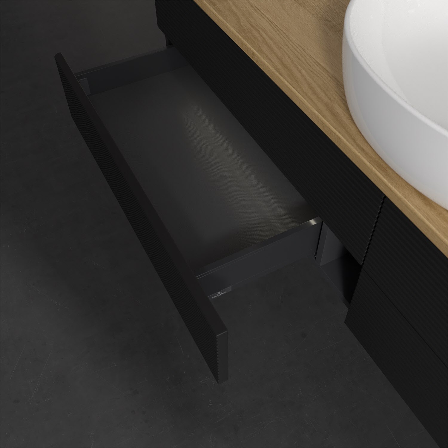 Villeroy & Boch Antao Waschbeckenunterschrank, 160 x 36 cm, 4 Auszüge mit LED-Licht, Front mit Struktur, ohne Hahnloch, für Waschtisch mittig