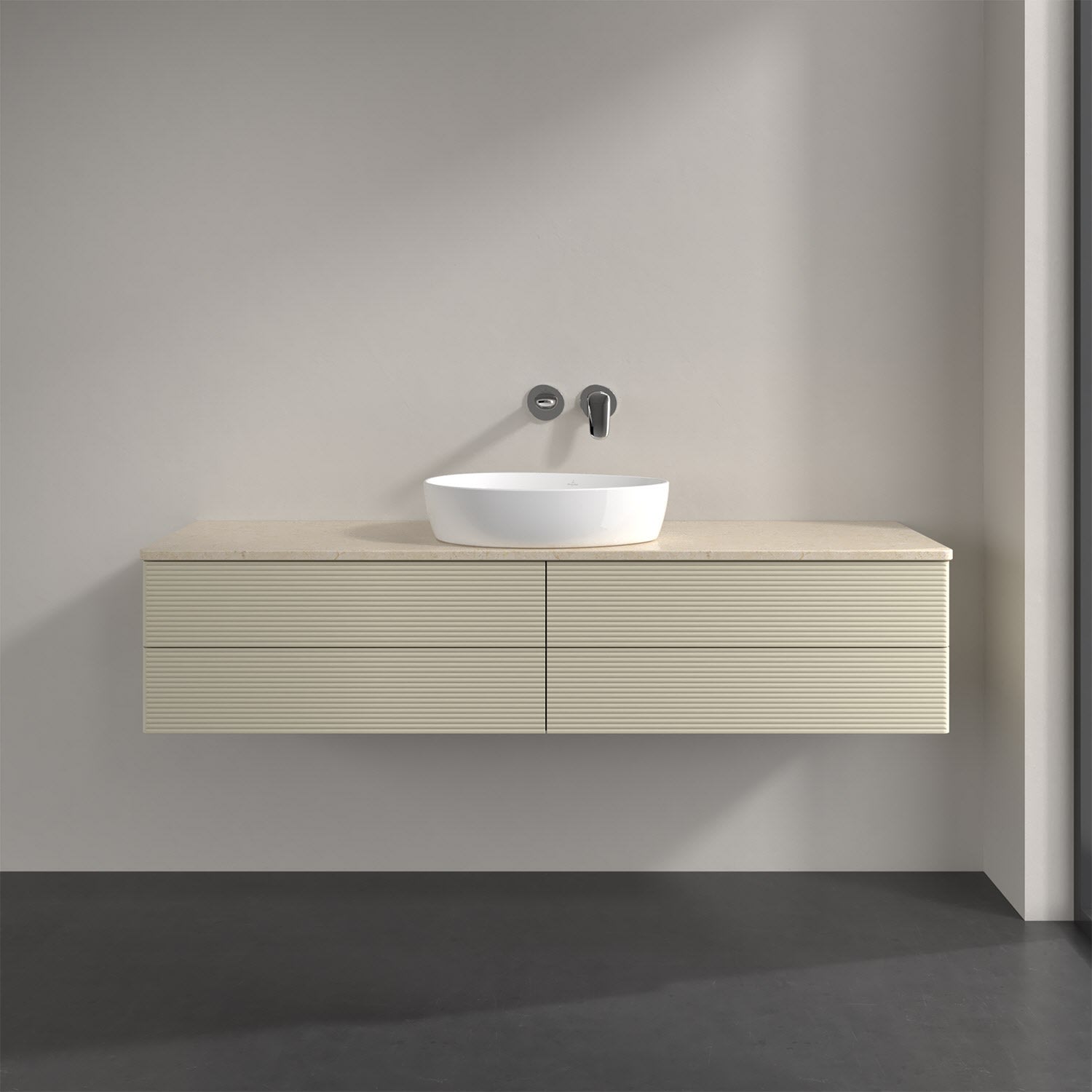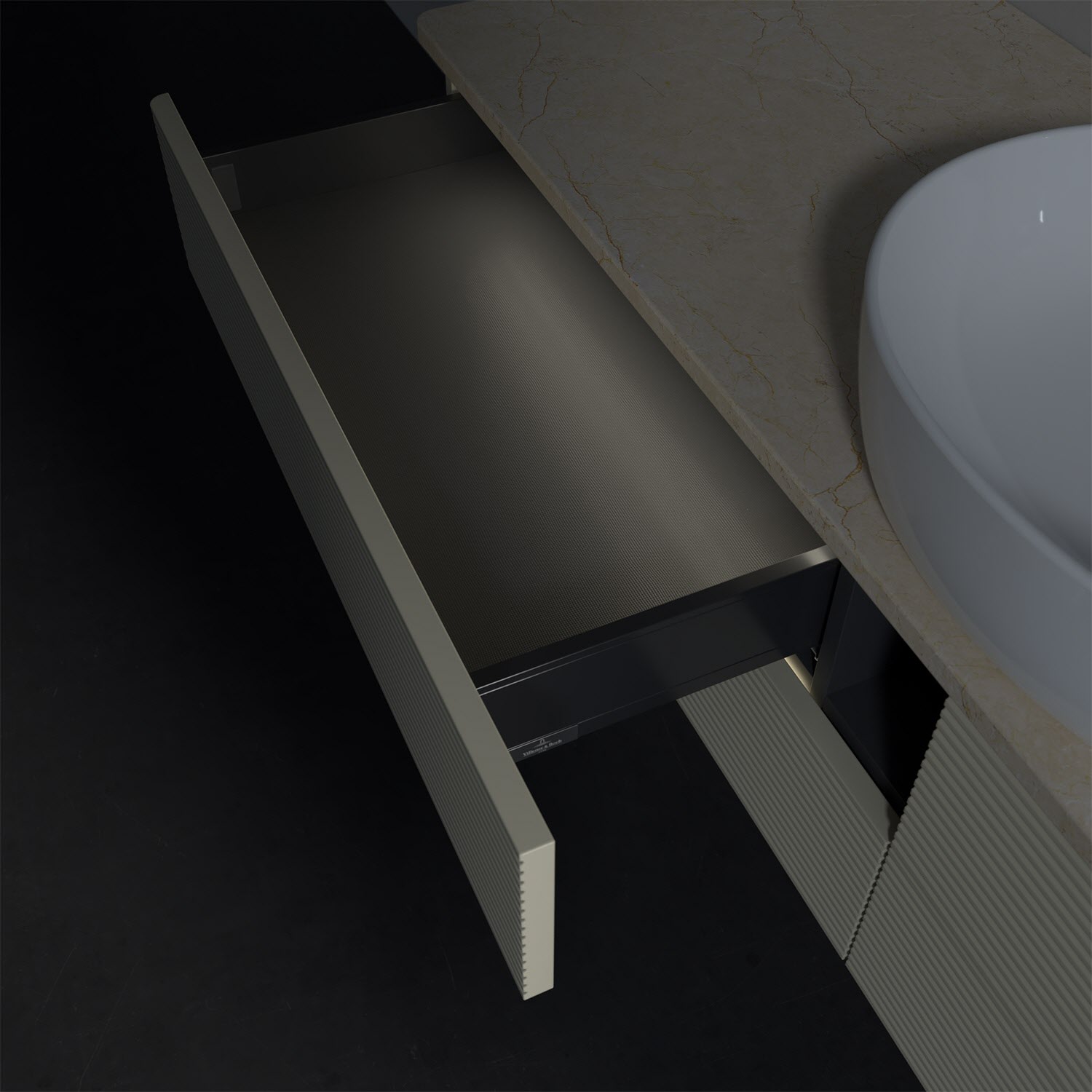 Villeroy & Boch Antao Waschbeckenunterschrank, 160 x 36 cm, 4 Auszüge mit LED-Licht, Front mit Struktur, ohne Hahnloch, für Waschtisch mittig