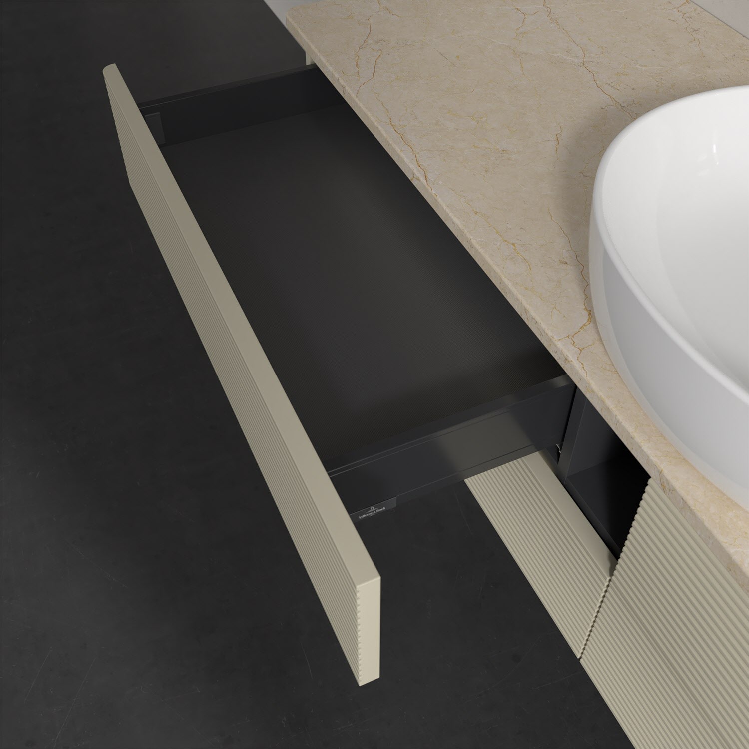 - kein Umfallen oder Verrutschen von Pflegeprodukten in den Schubladen dank rutschhemmendem Boden