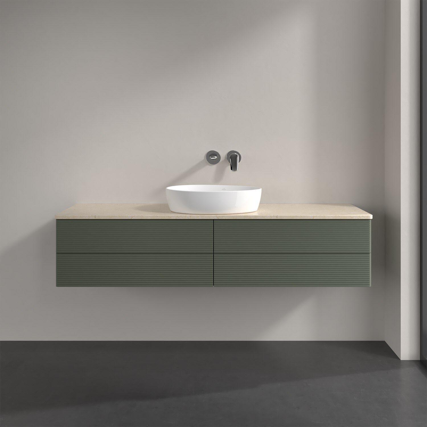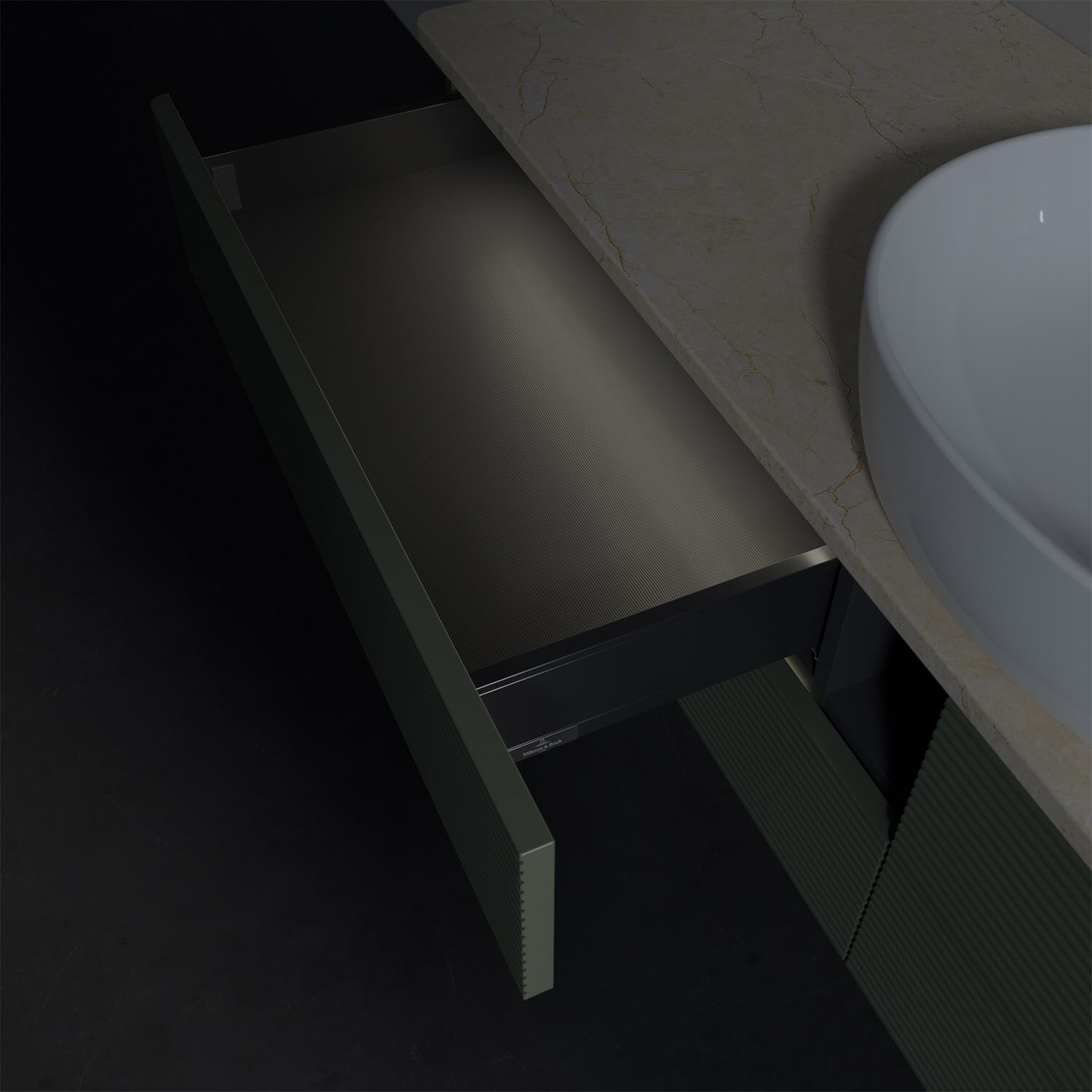 Villeroy & Boch Antao Waschbeckenunterschrank, 160 x 36 cm, 4 Auszüge mit LED-Licht, Front mit Struktur, ohne Hahnloch, für Waschtisch mittig