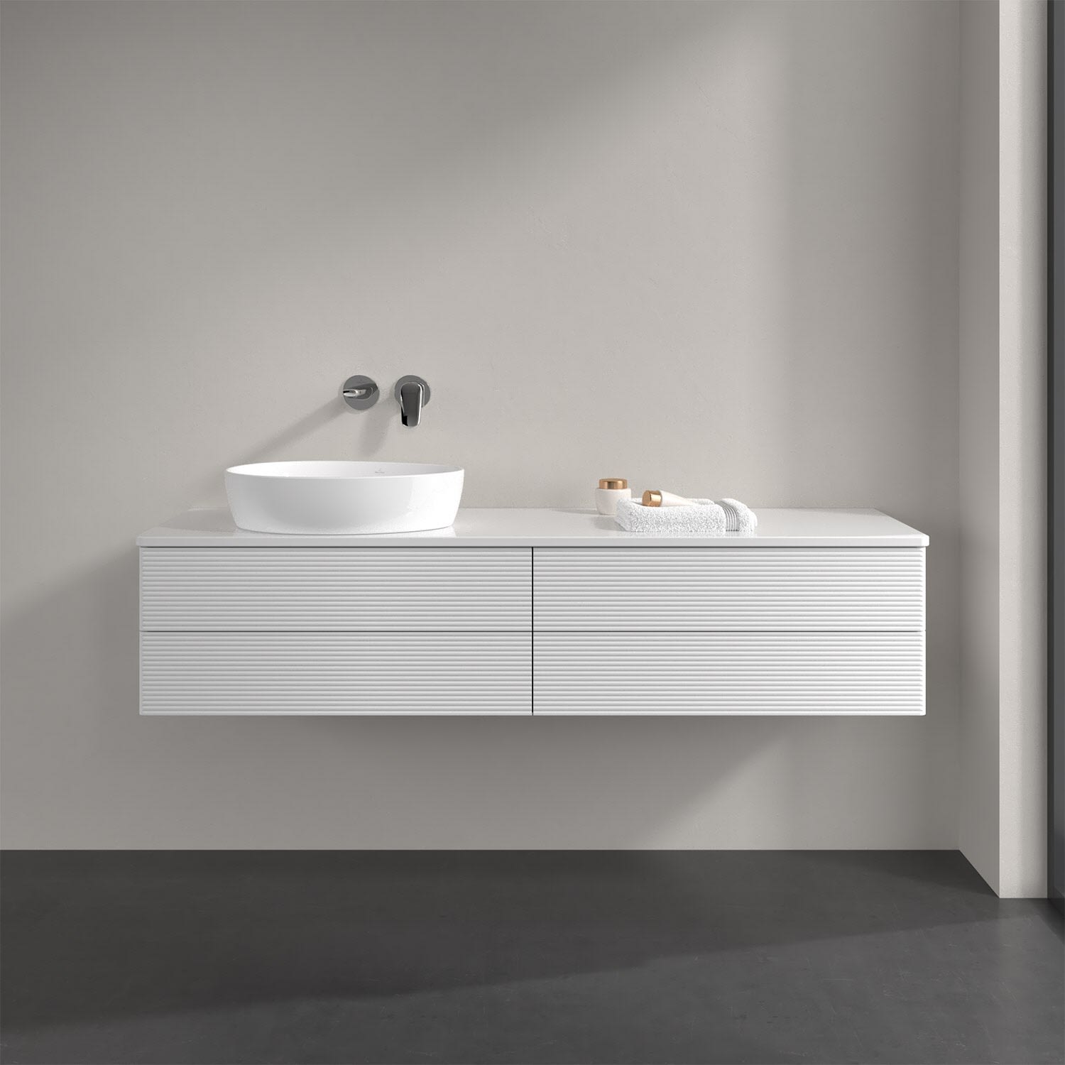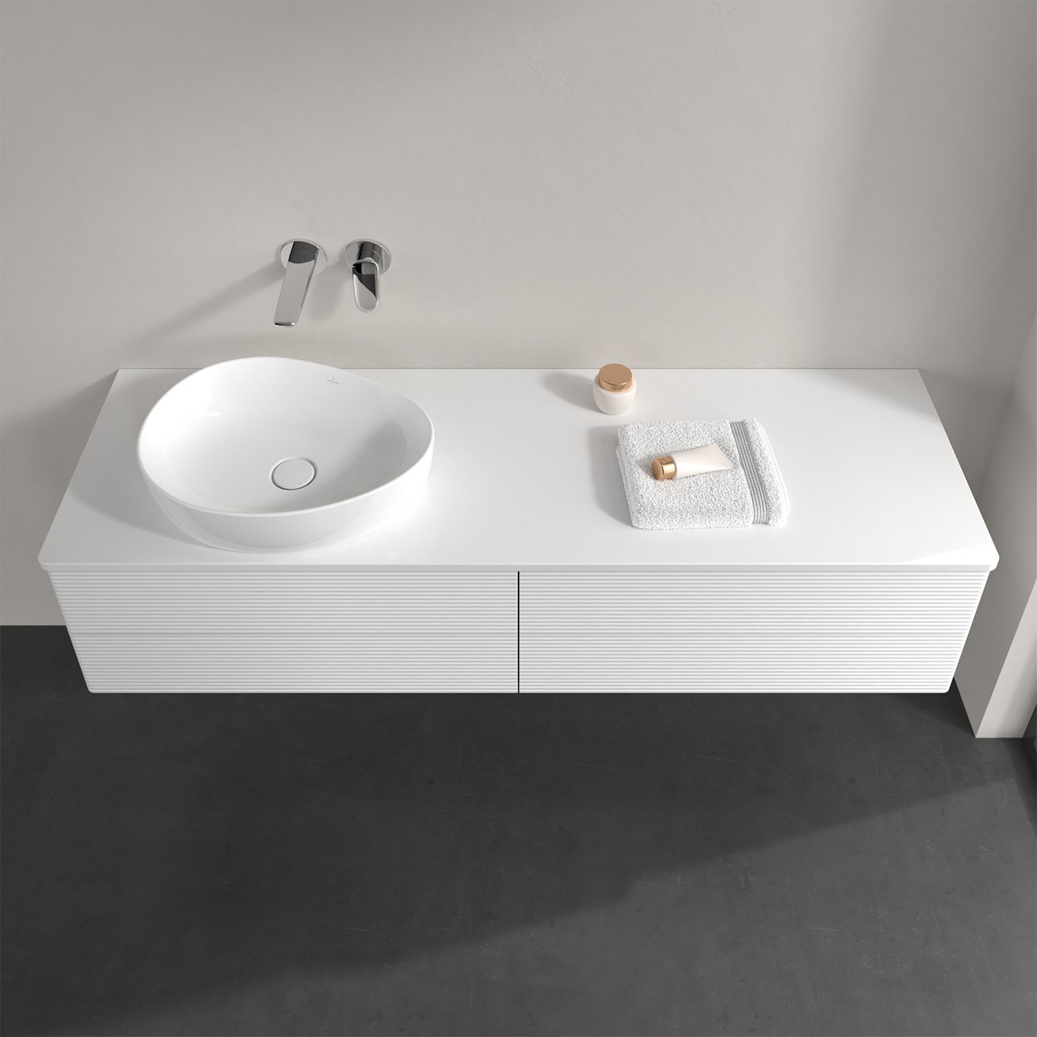 Villeroy & Boch Antao Waschbeckenunterschrank, 160 x 36 cm, 4 Auszüge mit LED-Licht, Front mit Struktur, ohne Hahnloch, für Waschtisch links