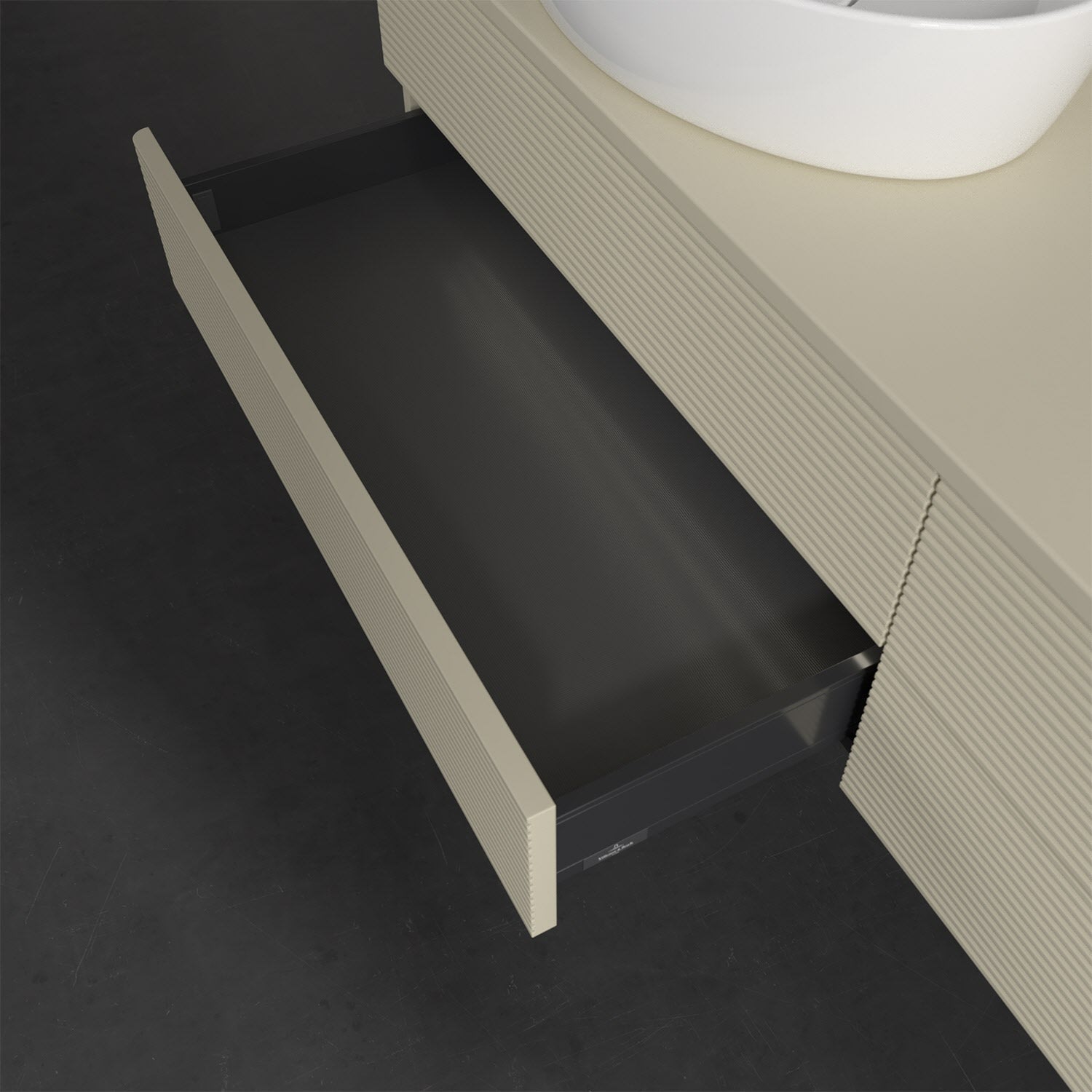 Villeroy & Boch Antao Waschbeckenunterschrank, 160 x 36 cm, 4 Auszüge mit LED-Licht, Front mit Struktur, ohne Hahnloch, für Waschtisch links