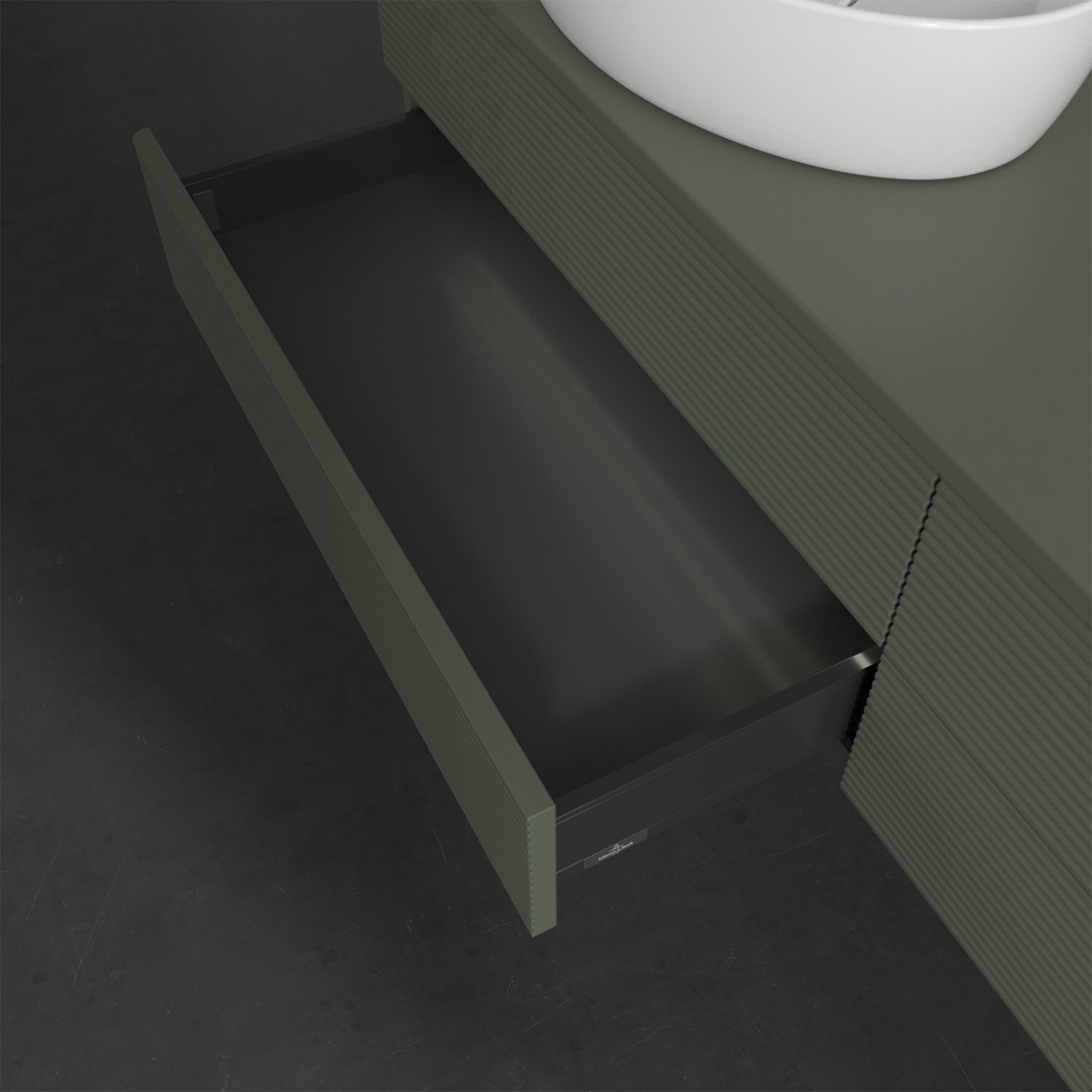 Villeroy & Boch Antao Waschbeckenunterschrank, 160 x 36 cm, 4 Auszüge mit LED-Licht, Front mit Struktur, ohne Hahnloch, für Waschtisch links
