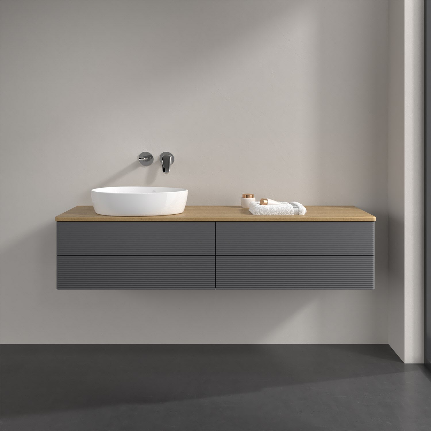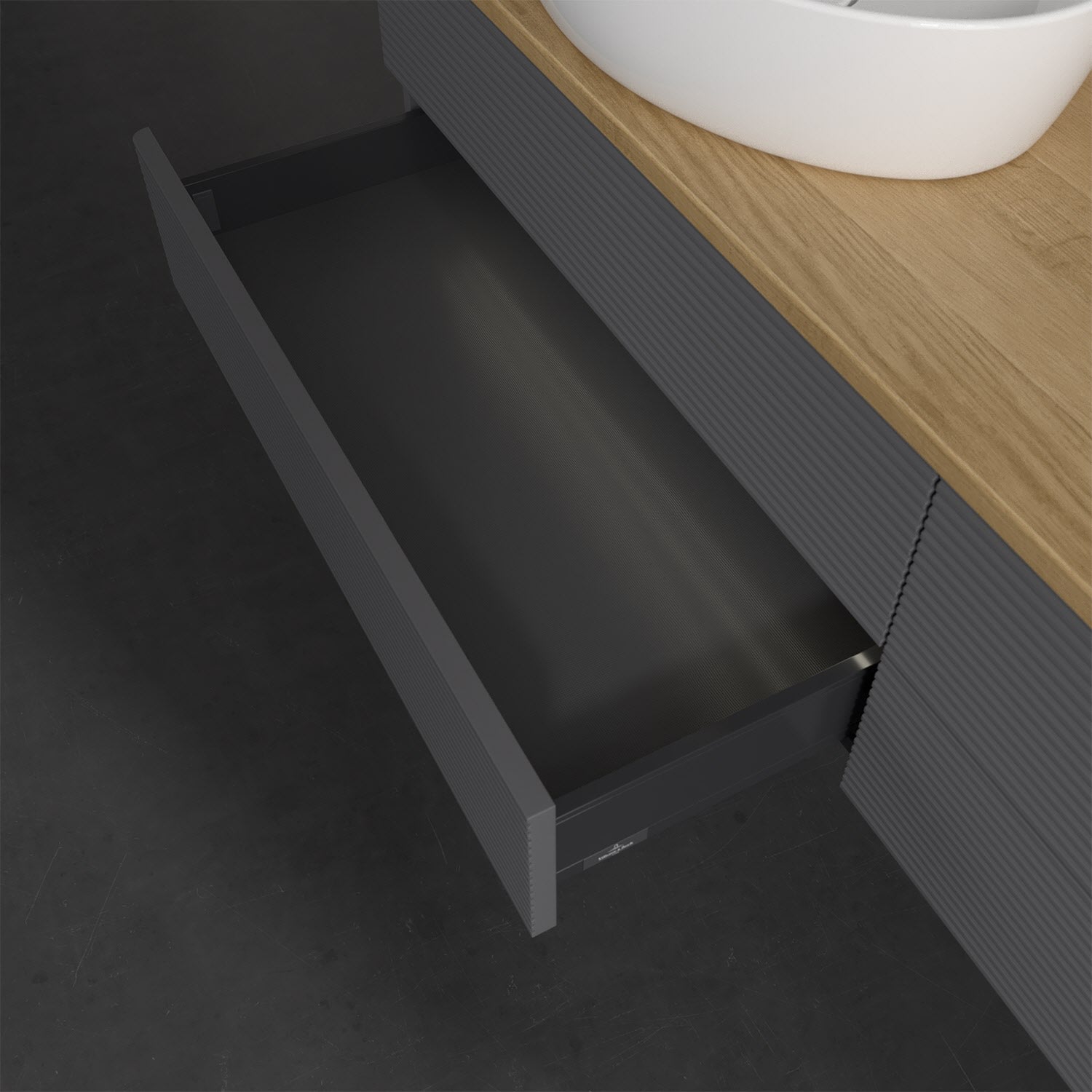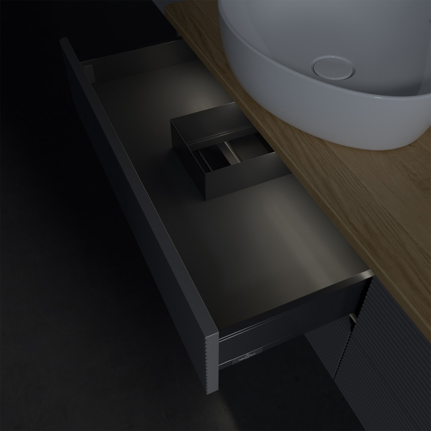 Villeroy & Boch Antao Waschbeckenunterschrank, 160 x 36 cm, 4 Auszüge mit LED-Licht, Front mit Struktur, ohne Hahnloch, für Waschtisch links