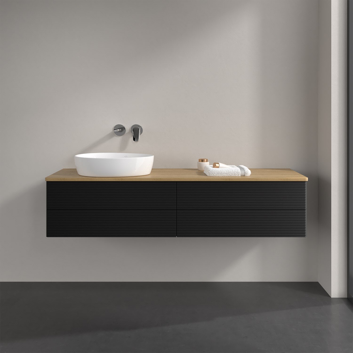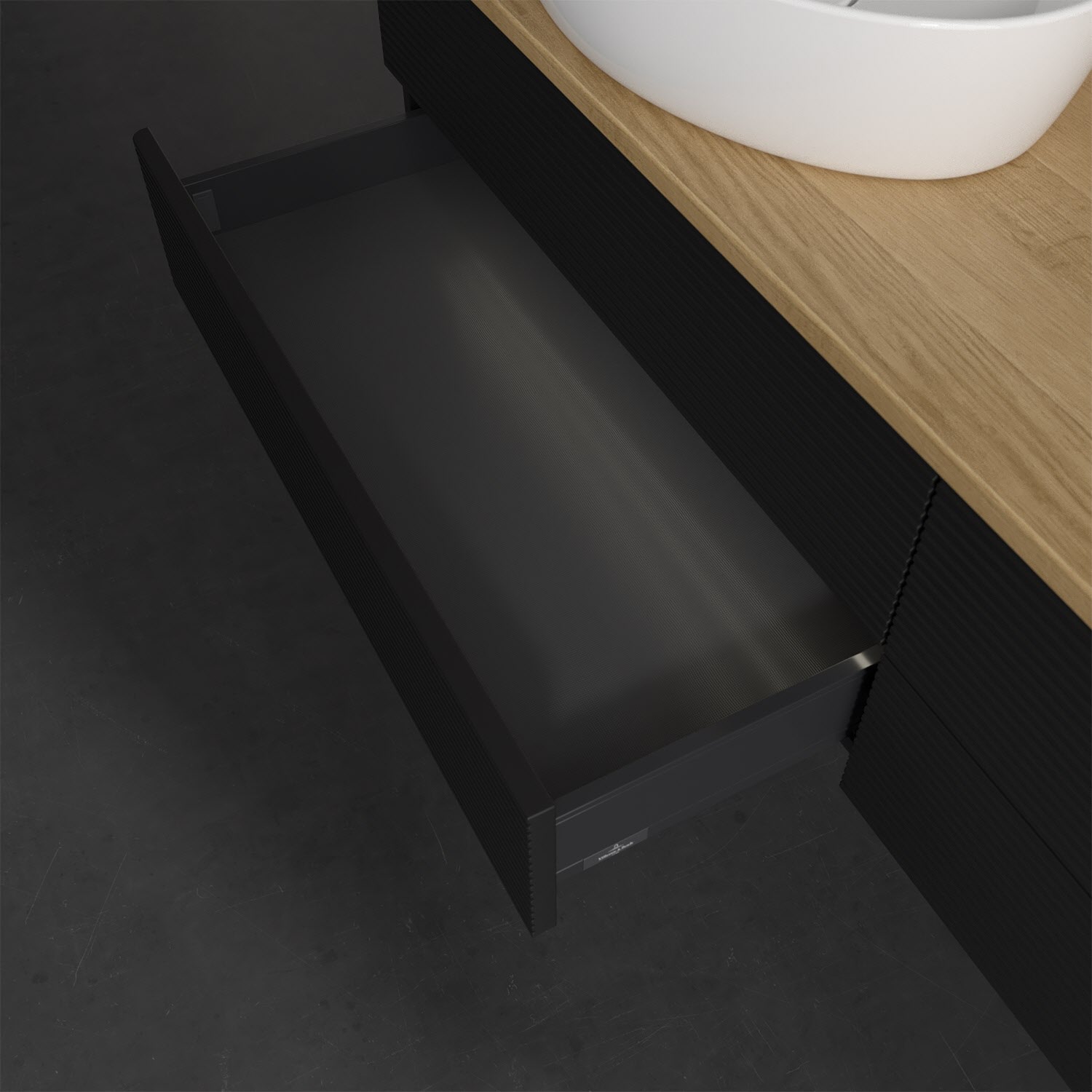 Villeroy & Boch Antao Waschbeckenunterschrank, 160 x 36 cm, 4 Auszüge mit LED-Licht, Front mit Struktur, ohne Hahnloch, für Waschtisch links