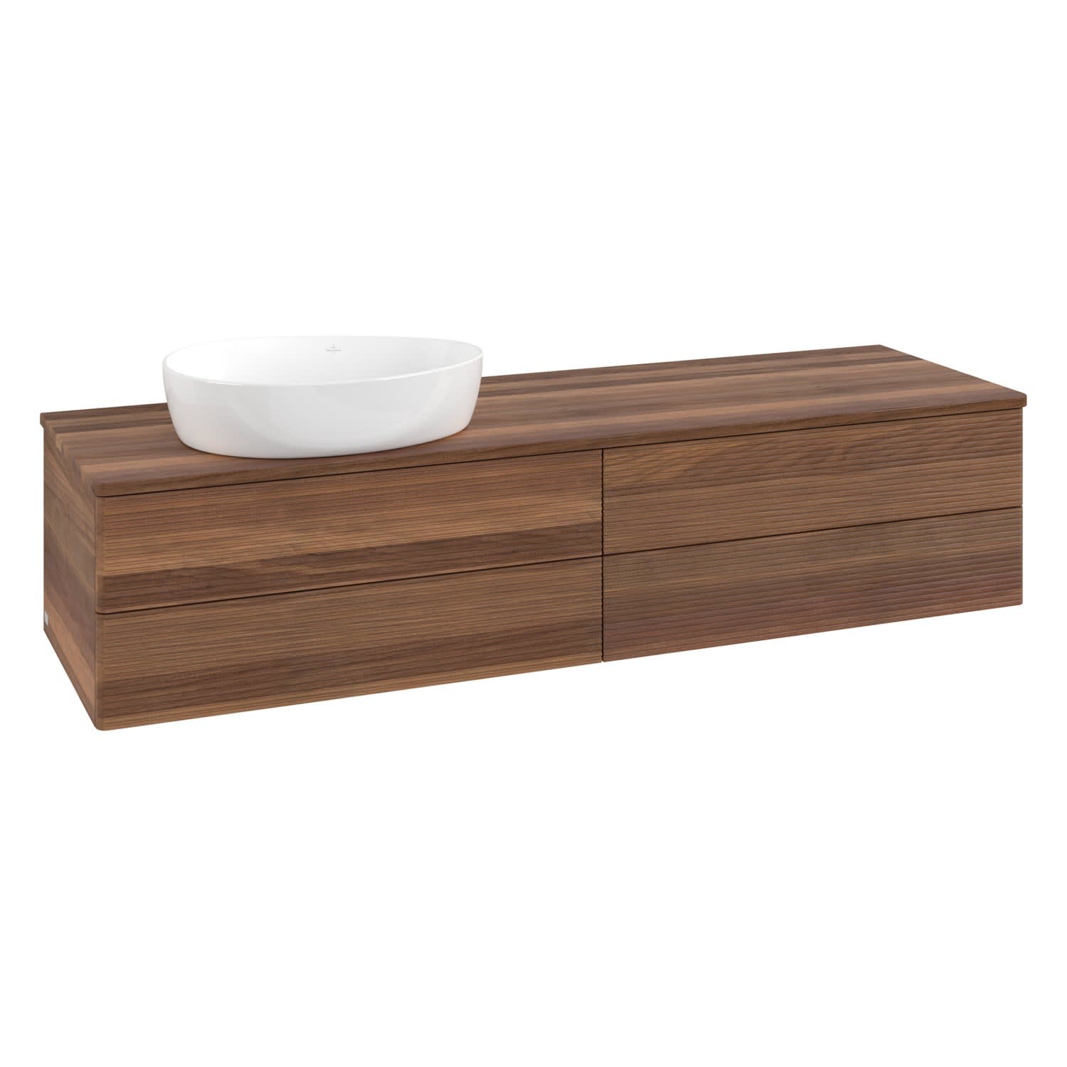 Villeroy & Boch Antao Waschbeckenunterschrank, 160 x 36 cm, 4 Auszüge mit LED-Licht, Front mit Struktur, ohne Hahnloch, für Waschtisch links