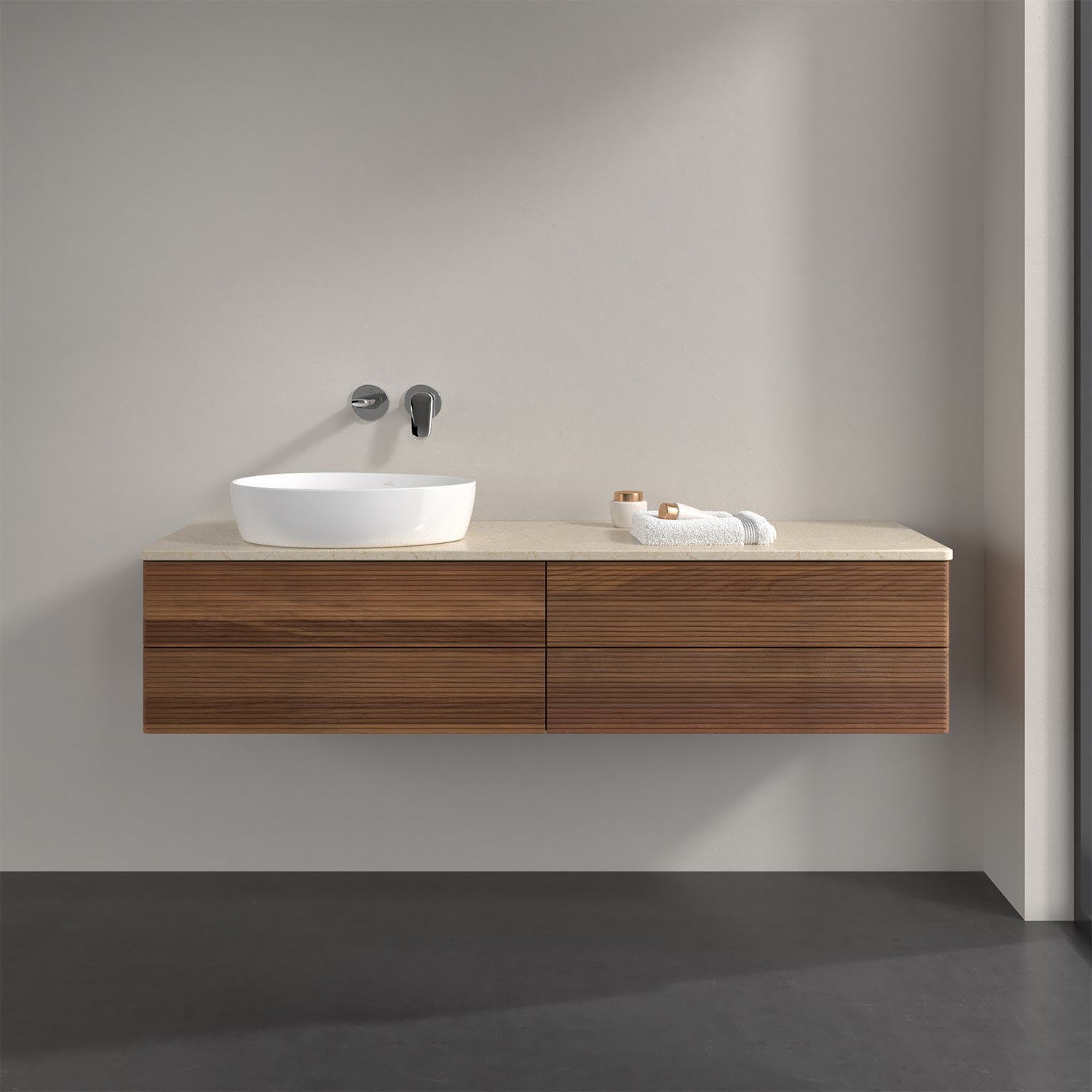 Villeroy & Boch Antao Waschbeckenunterschrank, 160 x 36 cm, 4 Auszüge mit LED-Licht, Front mit Struktur, ohne Hahnloch, für Waschtisch links