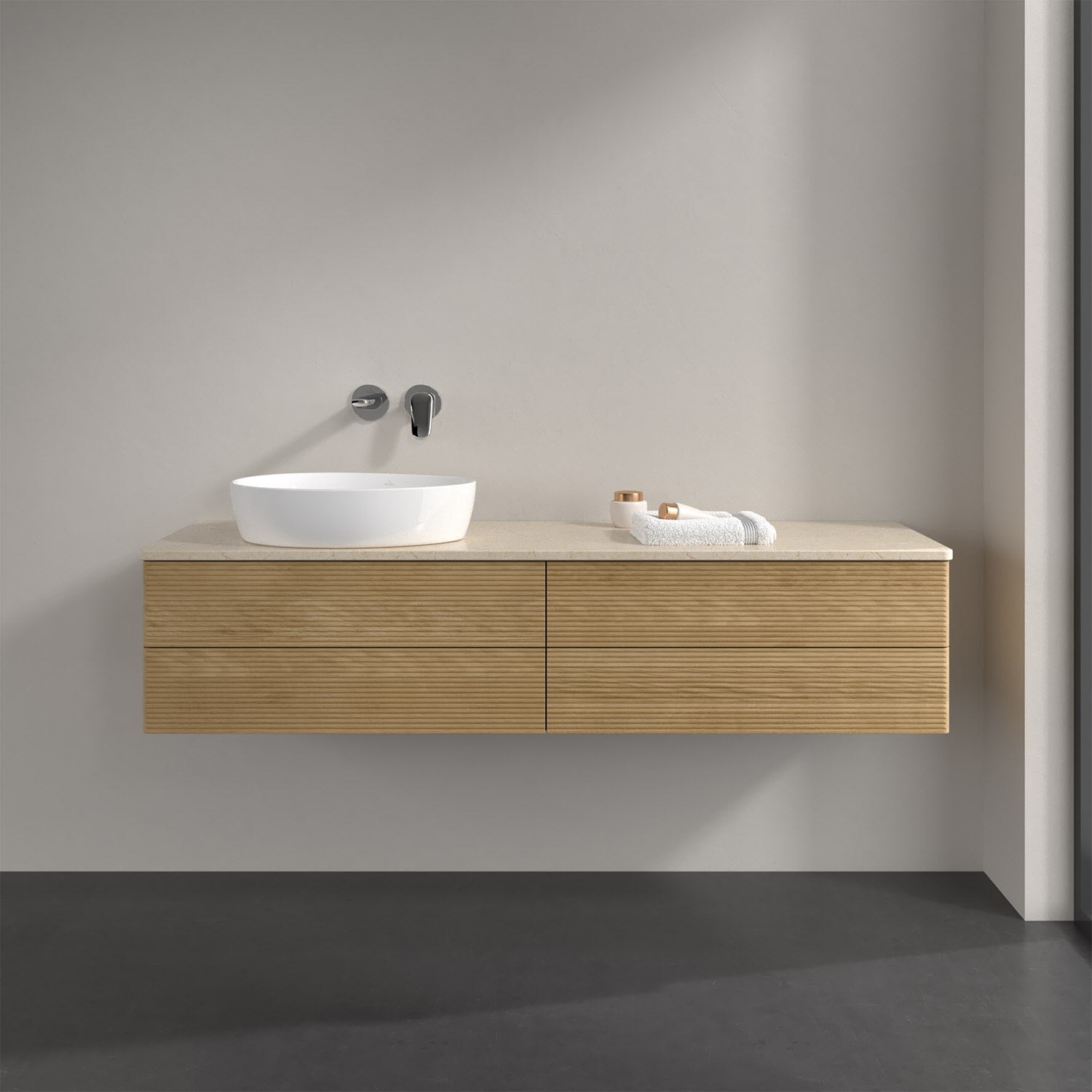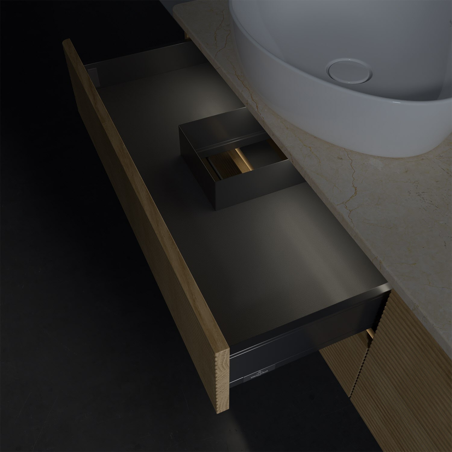 Villeroy & Boch Antao Waschbeckenunterschrank, 160 x 36 cm, 4 Auszüge mit LED-Licht, Front mit Struktur, ohne Hahnloch, für Waschtisch links