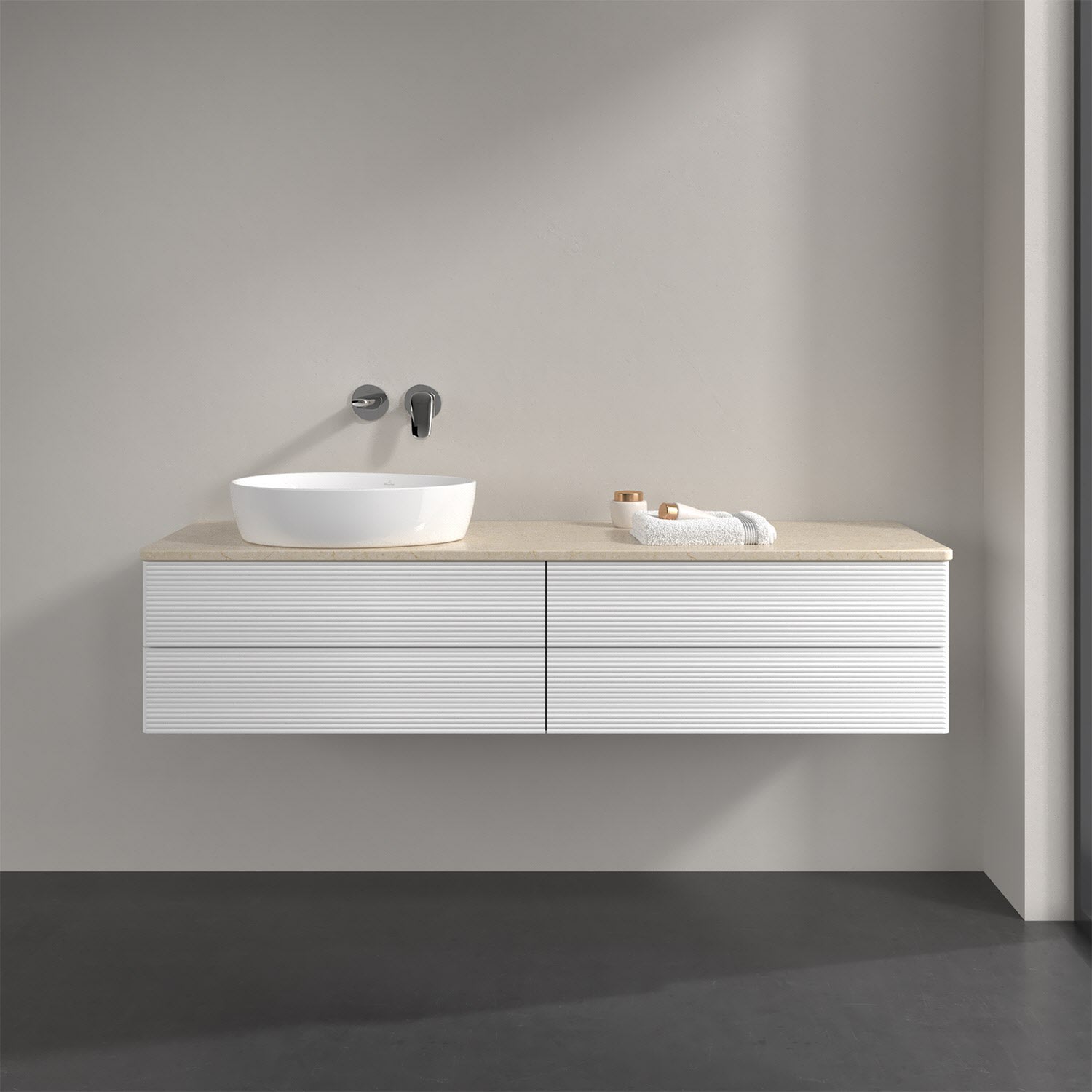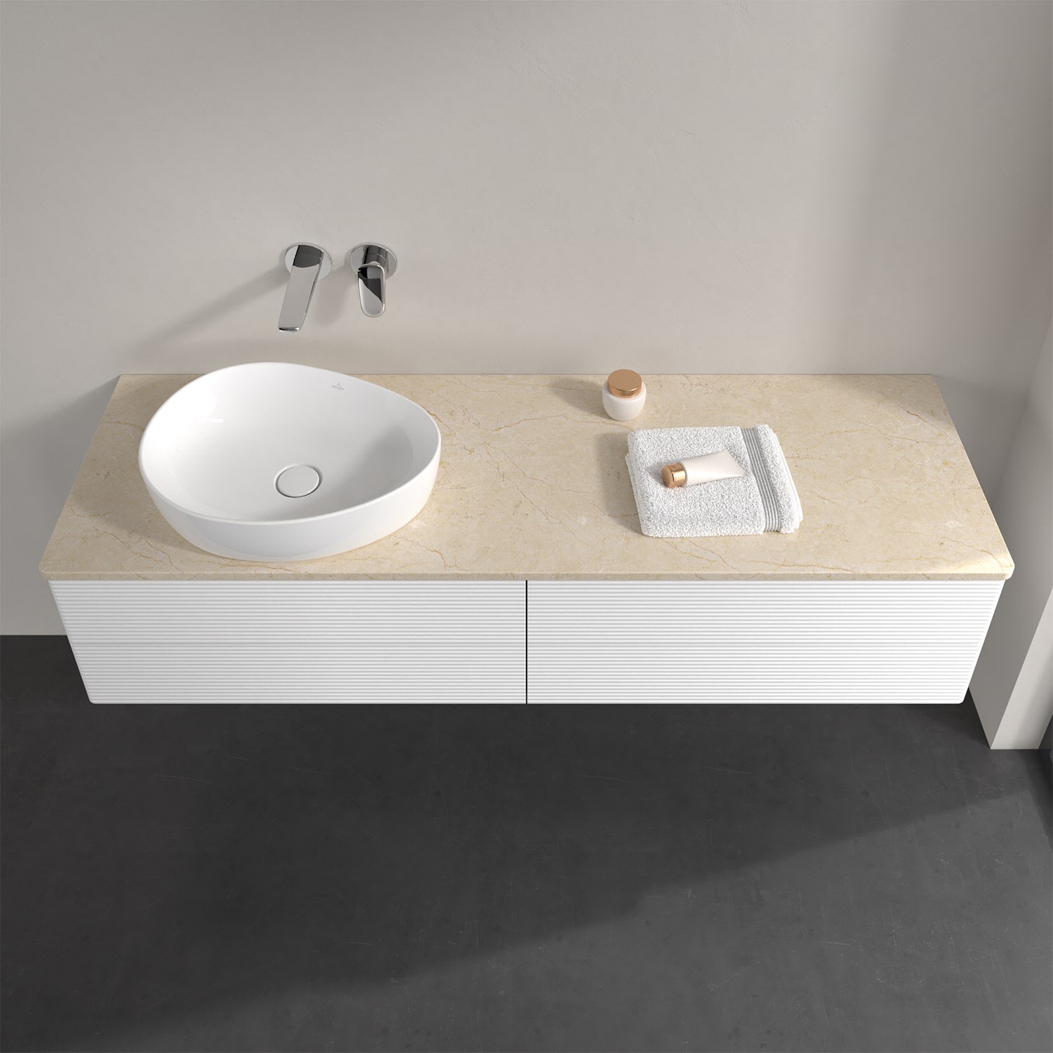 Villeroy & Boch Antao Waschbeckenunterschrank, 160 x 36 cm, 4 Auszüge mit LED-Licht, Front mit Struktur, ohne Hahnloch, für Waschtisch links