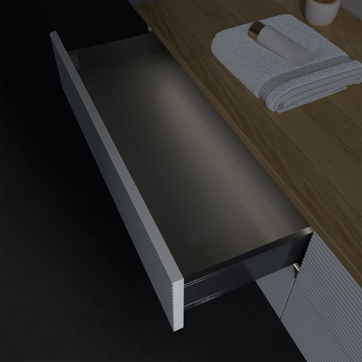 - kein Umfallen oder Verrutschen von Pflegeprodukten in den Schubladen dank rutschhemmendem Boden