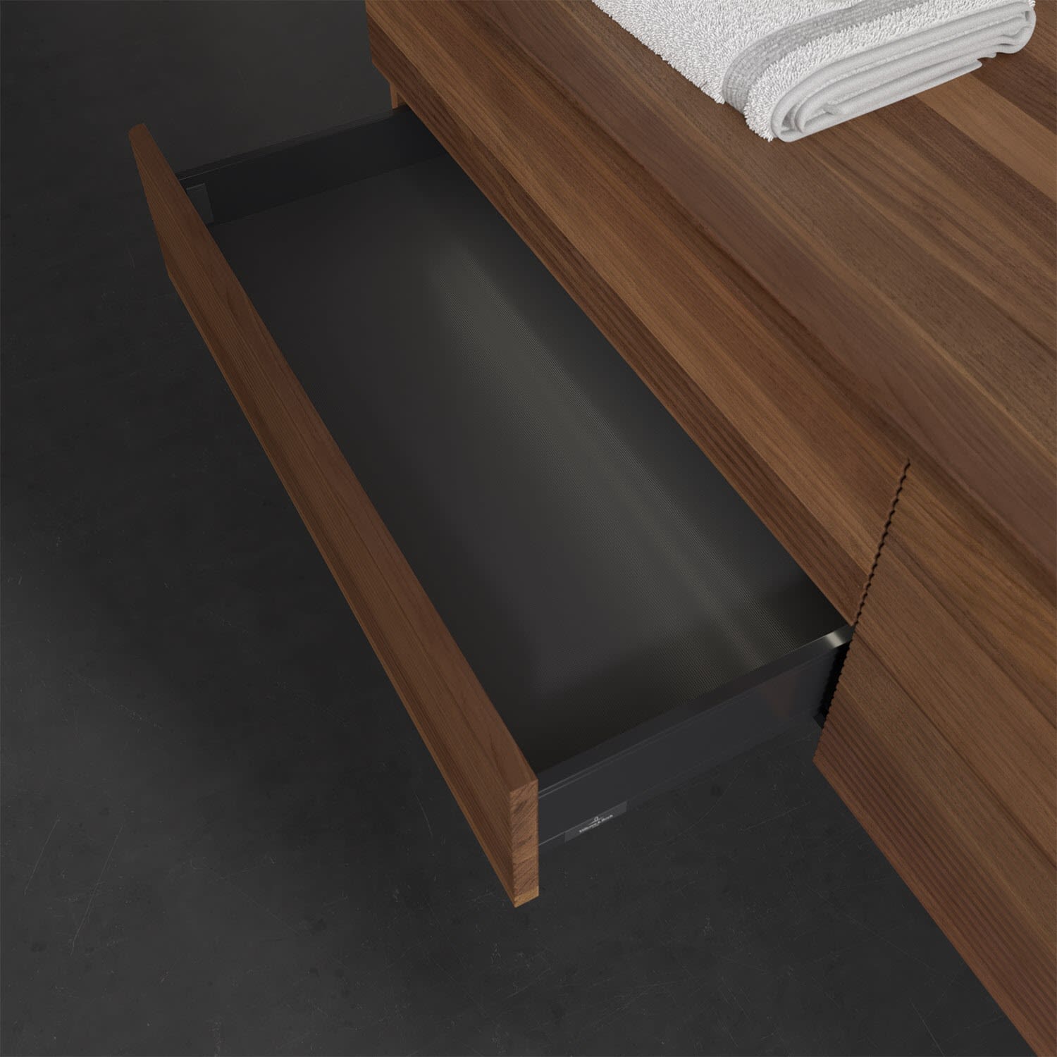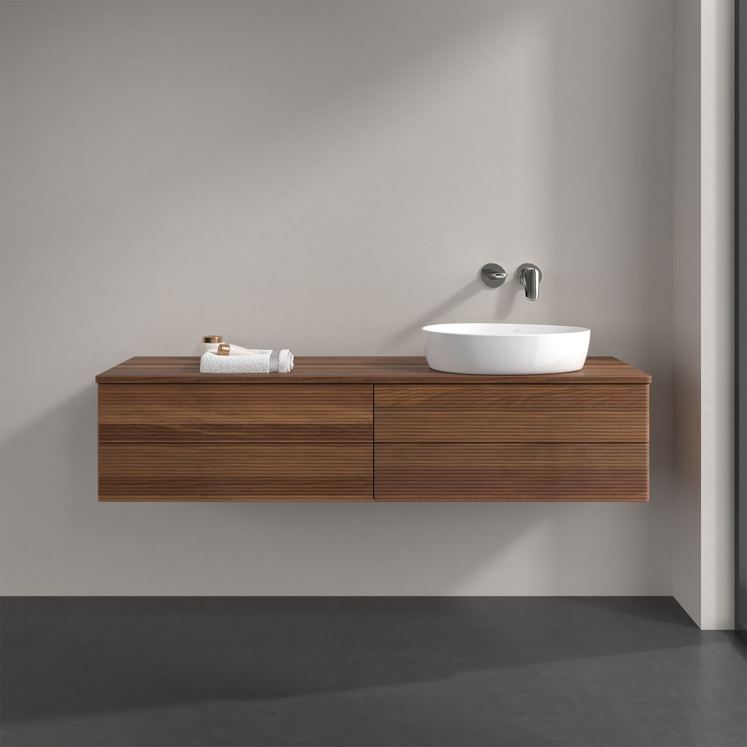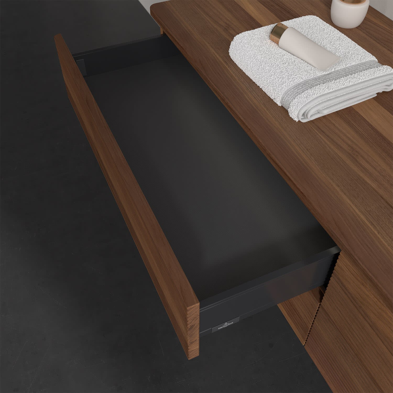 Villeroy & Boch Antao Waschbeckenunterschrank, 160 x 36 cm, 4 Auszüge mit LED-Licht, Front mit Struktur, ohne Hahnloch, für Waschtisch rechts