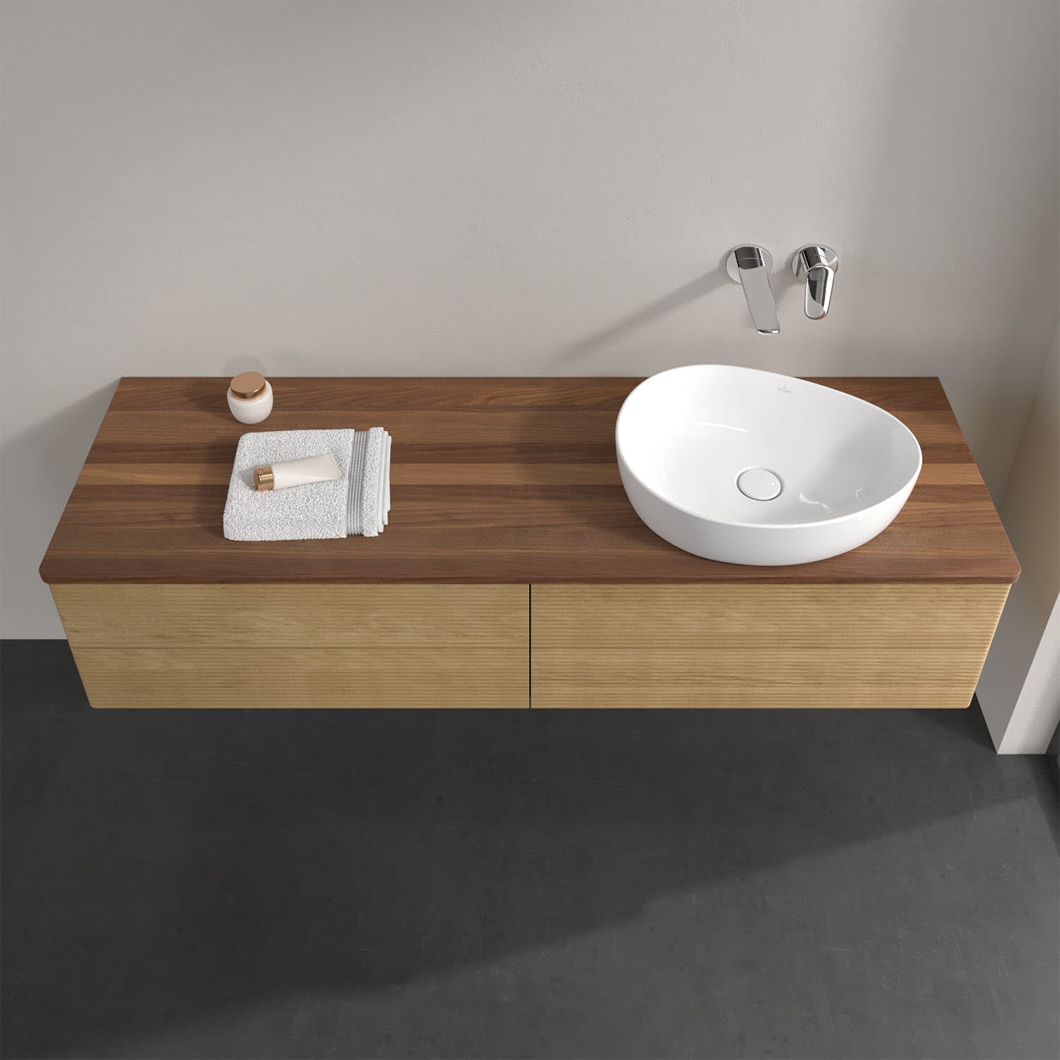 Villeroy & Boch Antao Waschbeckenunterschrank, 160 x 36 cm, 4 Auszüge mit LED-Licht, Front mit Struktur, ohne Hahnloch, für Waschtisch rechts