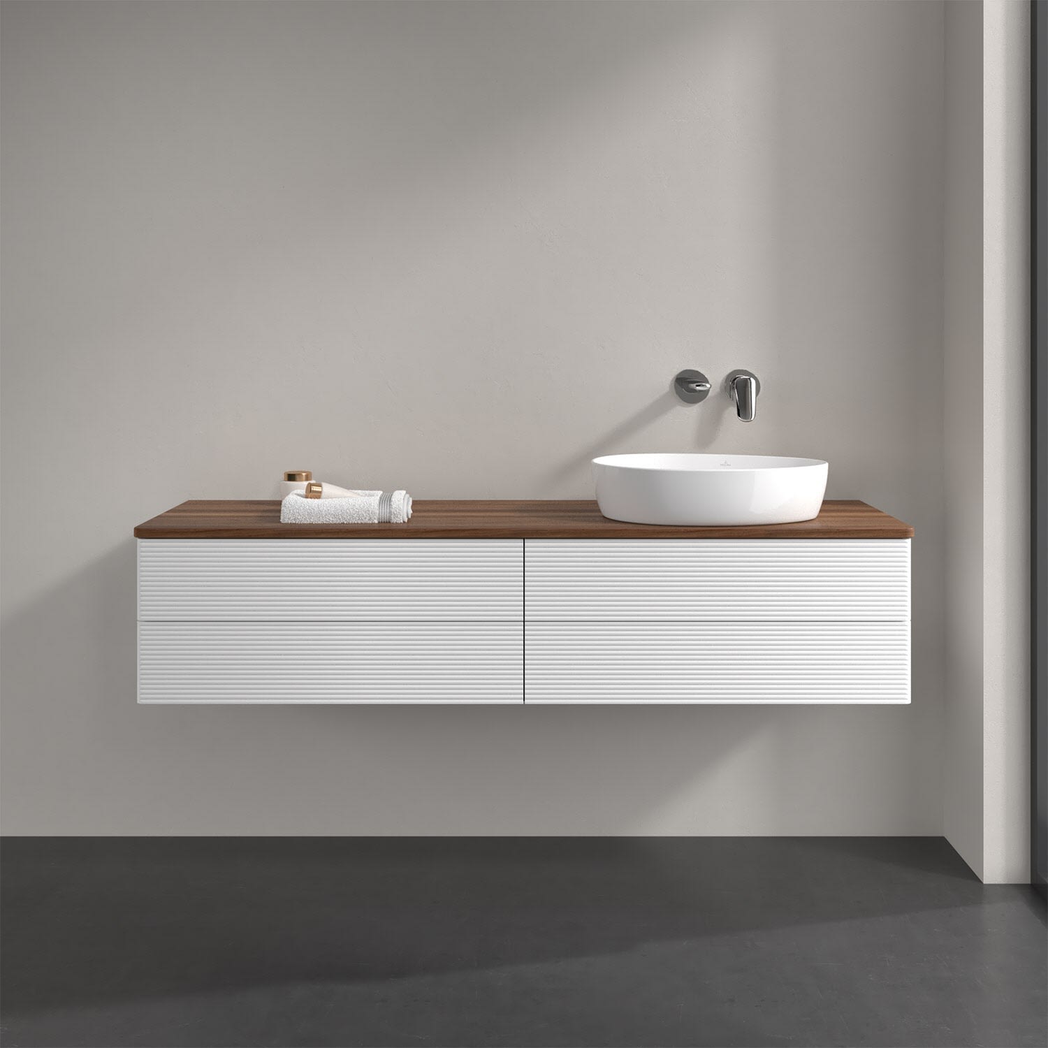 Villeroy & Boch Antao Waschbeckenunterschrank, 160 x 36 cm, 4 Auszüge mit LED-Licht, Front mit Struktur, ohne Hahnloch, für Waschtisch rechts