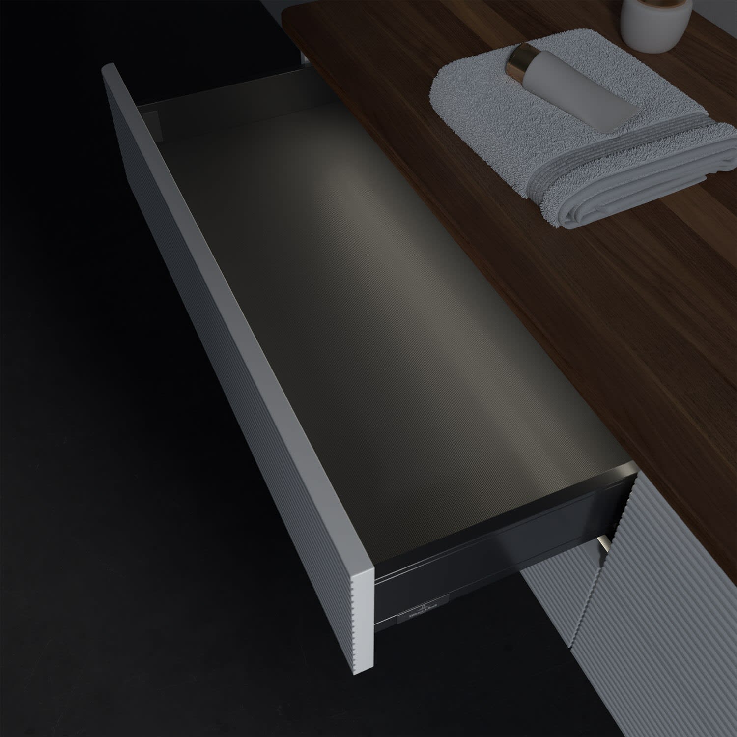 - kein Umfallen oder Verrutschen von Pflegeprodukten in den Schubladen dank rutschhemmendem Boden