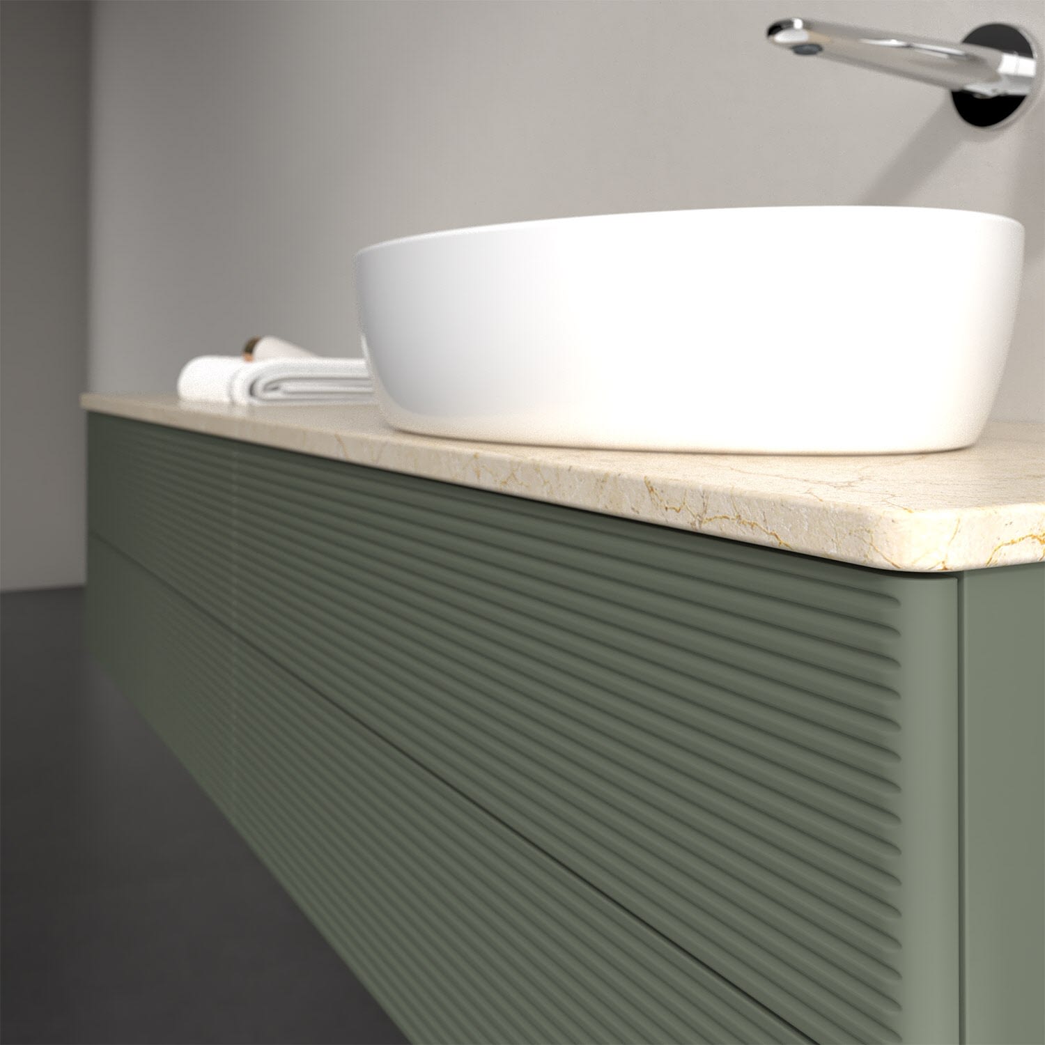 Für diesen Waschbeckenunterschrank stehen Ihnen Aufsatzwaschtische aus verschiedenen Serien zur Verfügung (siehe "Passliste" unter Downloads). Ein ausgewähltes Beispiel finden Sie im Zubehör. Den Waschtisch bitte separat mitbestellen.