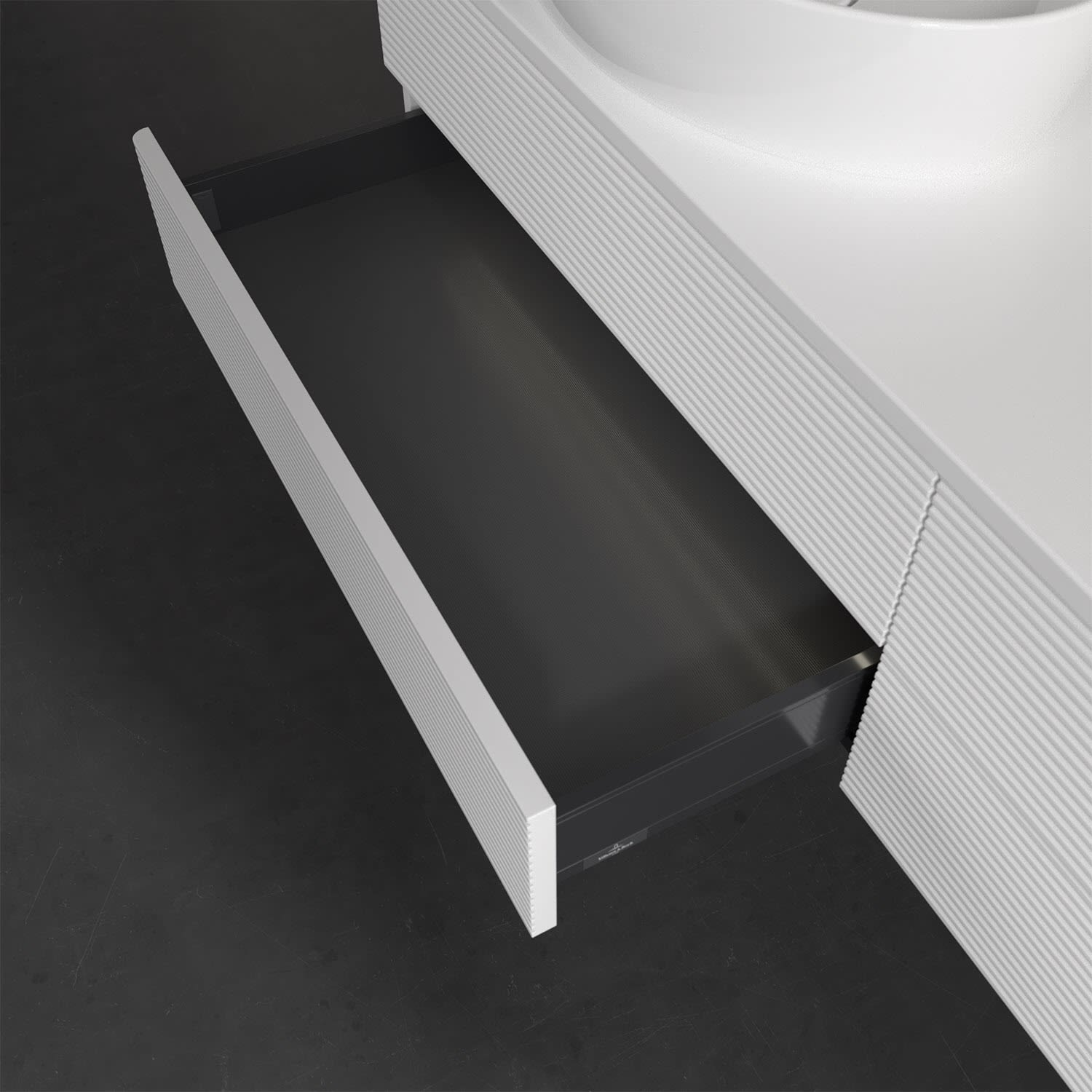 Villeroy & Boch Antao Waschbeckenunterschrank, 160 x 36 cm, 4 Auszüge mit LED-Licht, Front mit Struktur, ohne Hahnloch, für Waschtisch links und recht