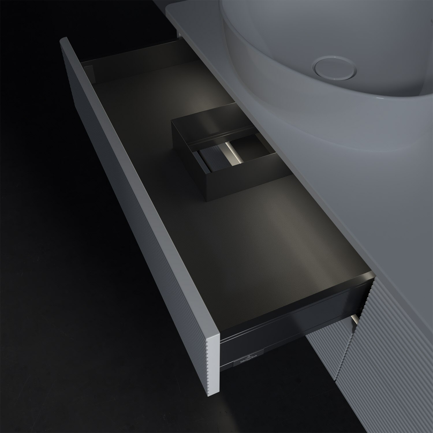 - kein Umfallen oder Verrutschen von Pflegeprodukten in den Schubladen dank rutschhemmendem Boden
