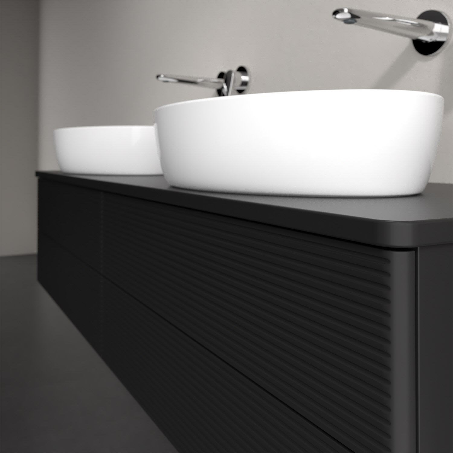 Villeroy & Boch Antao Waschbeckenunterschrank, 160 x 36 cm, 4 Auszüge mit LED-Licht, Front mit Struktur, ohne Hahnloch, für Waschtisch links und recht