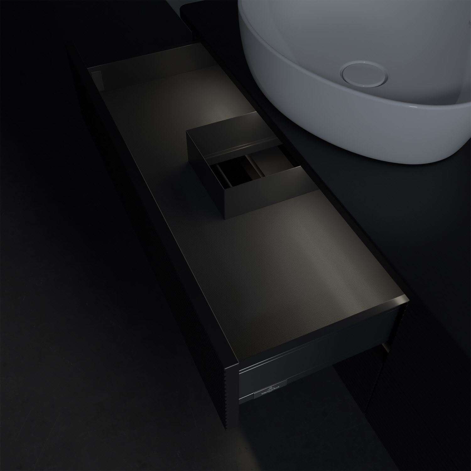 - kein Umfallen oder Verrutschen von Pflegeprodukten in den Schubladen dank rutschhemmendem Boden