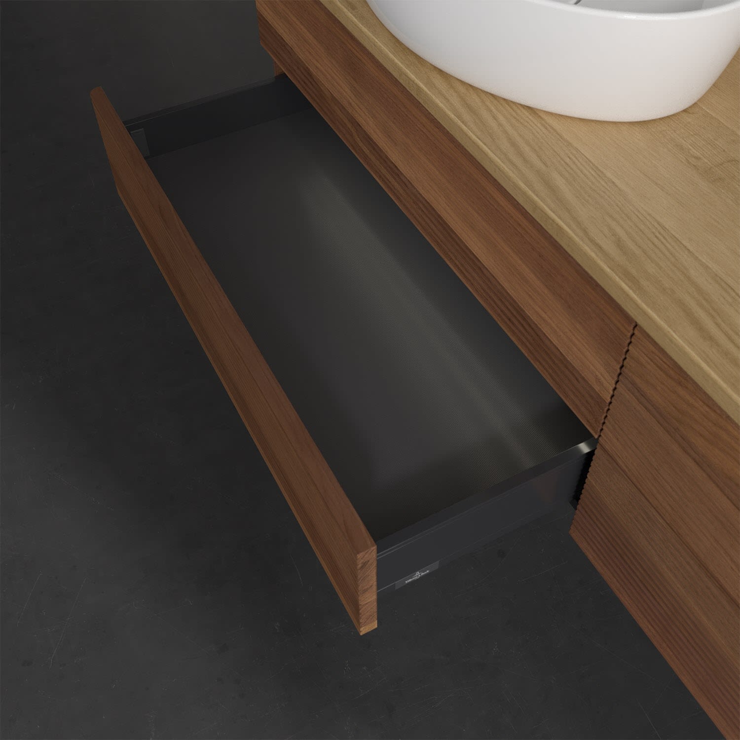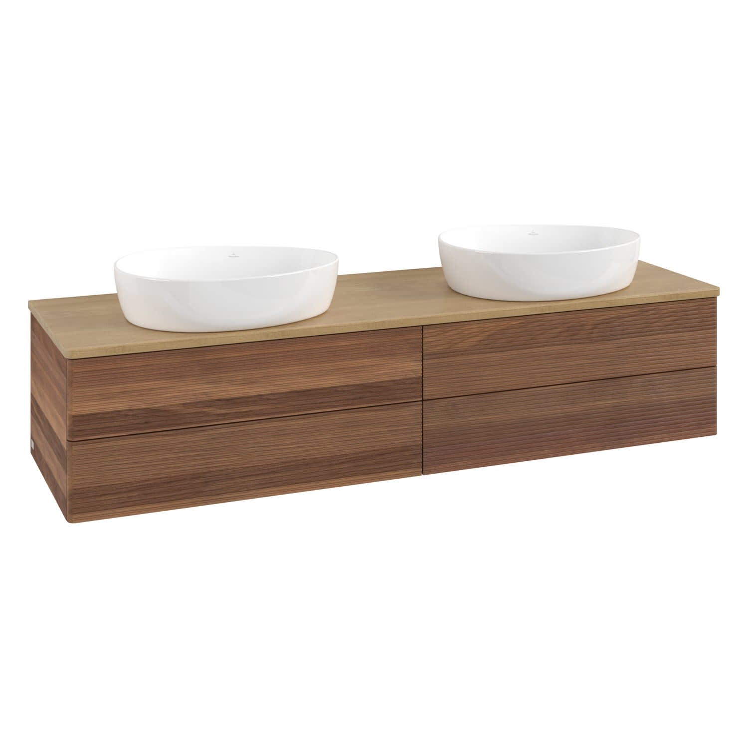 Villeroy & Boch Antao Waschbeckenunterschrank, 160 x 36 cm, 4 Auszüge mit LED-Licht, Front mit Struktur, ohne Hahnloch, für Waschtisch links und recht