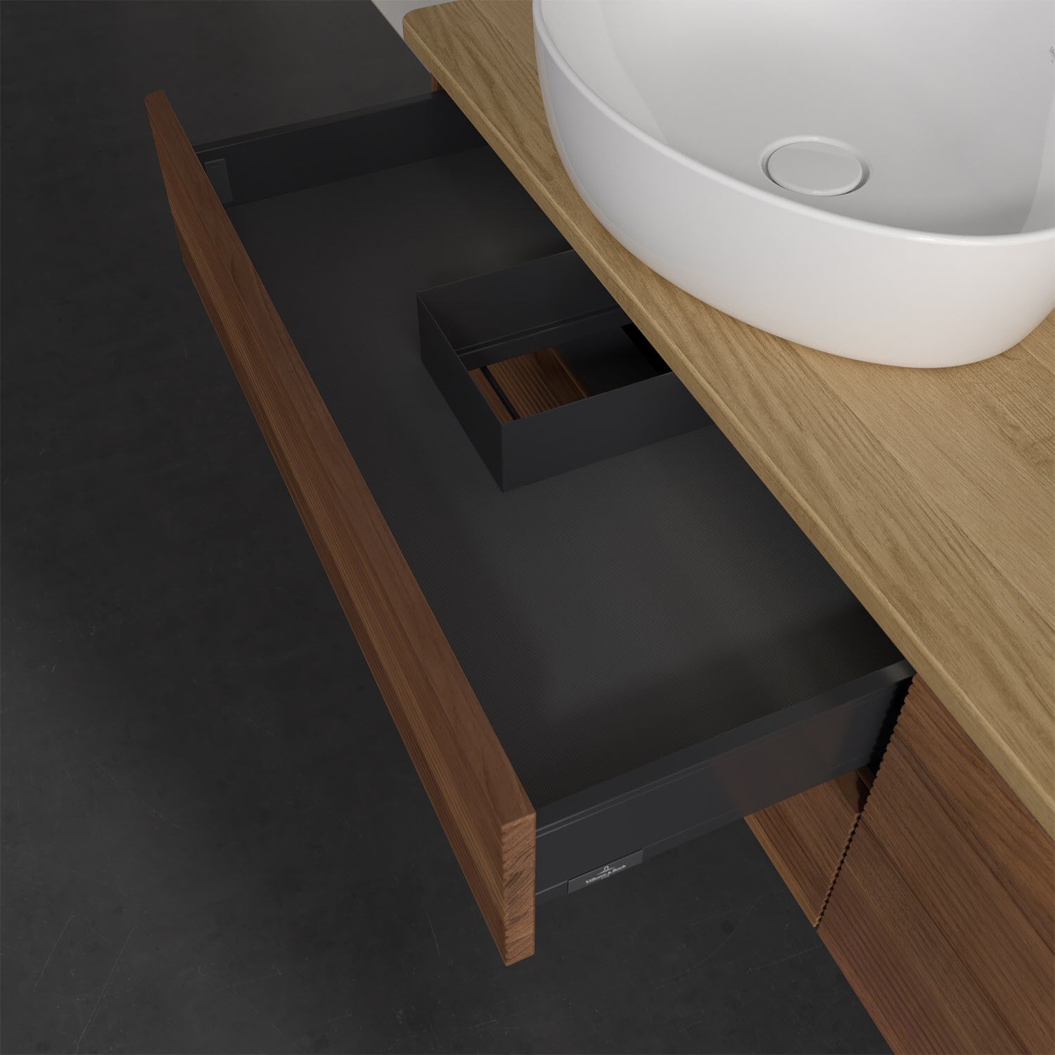 Für diesen Waschbeckenunterschrank stehen Ihnen Aufsatzwaschtische aus verschiedenen Serien zur Verfügung (siehe "Passliste" unter Downloads). Ein ausgewähltes Beispiel finden Sie im Zubehör. Den Waschtisch bitte separat mitbestellen.