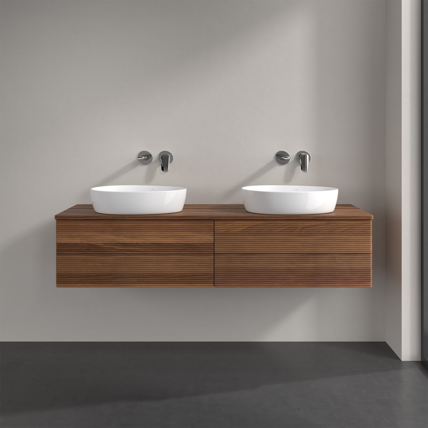 Villeroy & Boch Antao Waschbeckenunterschrank, 160 x 36 cm, 4 Auszüge mit LED-Licht, Front mit Struktur, ohne Hahnloch, für Waschtisch links und recht
