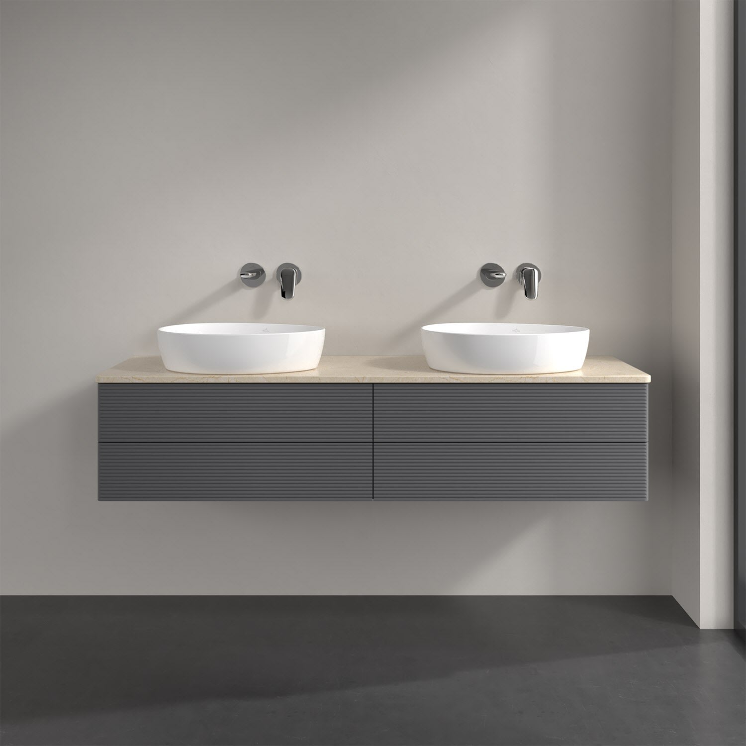 Villeroy & Boch Antao Waschbeckenunterschrank, 160 x 36 cm, 4 Auszüge mit LED-Licht, Front mit Struktur, ohne Hahnloch, für Waschtisch links und recht