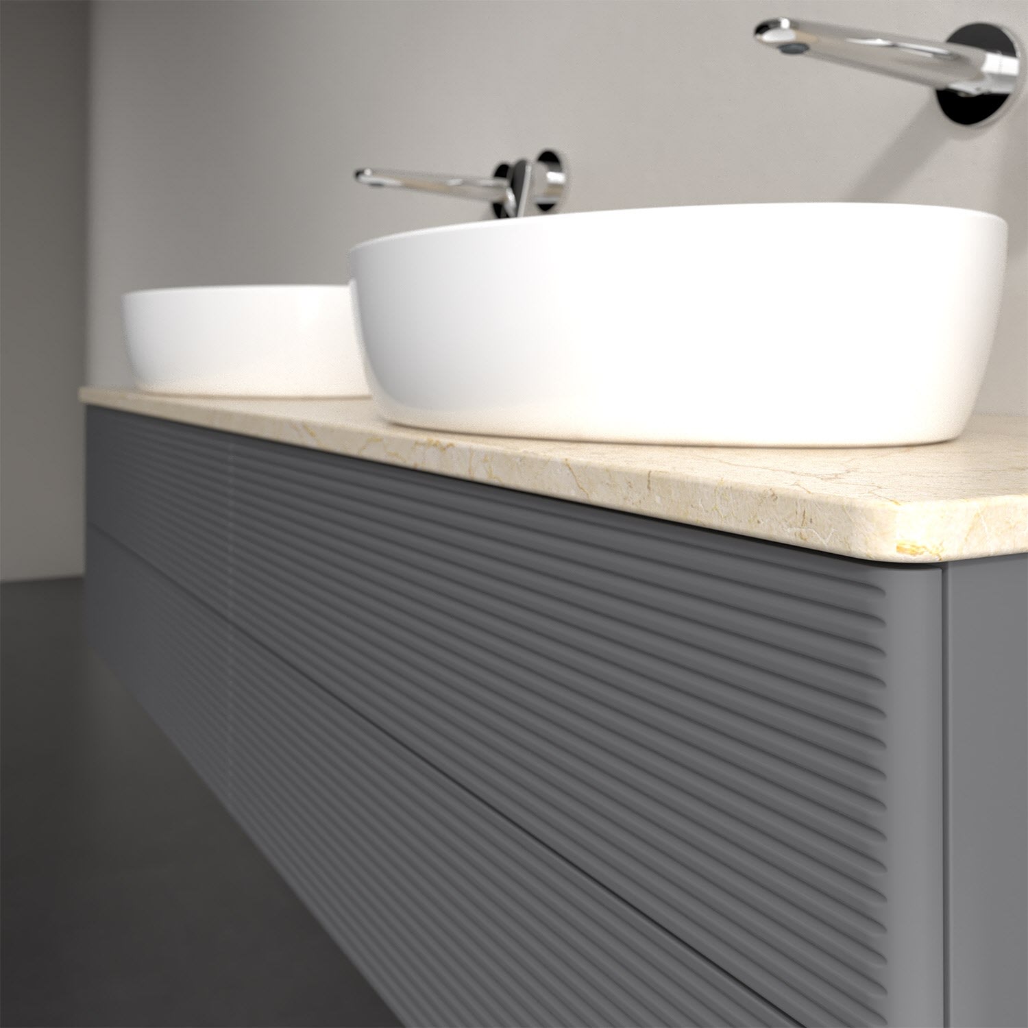 Für diesen Waschbeckenunterschrank stehen Ihnen Aufsatzwaschtische aus verschiedenen Serien zur Verfügung (siehe "Passliste" unter Downloads). Ein ausgewähltes Beispiel finden Sie im Zubehör. Den Waschtisch bitte separat mitbestellen.