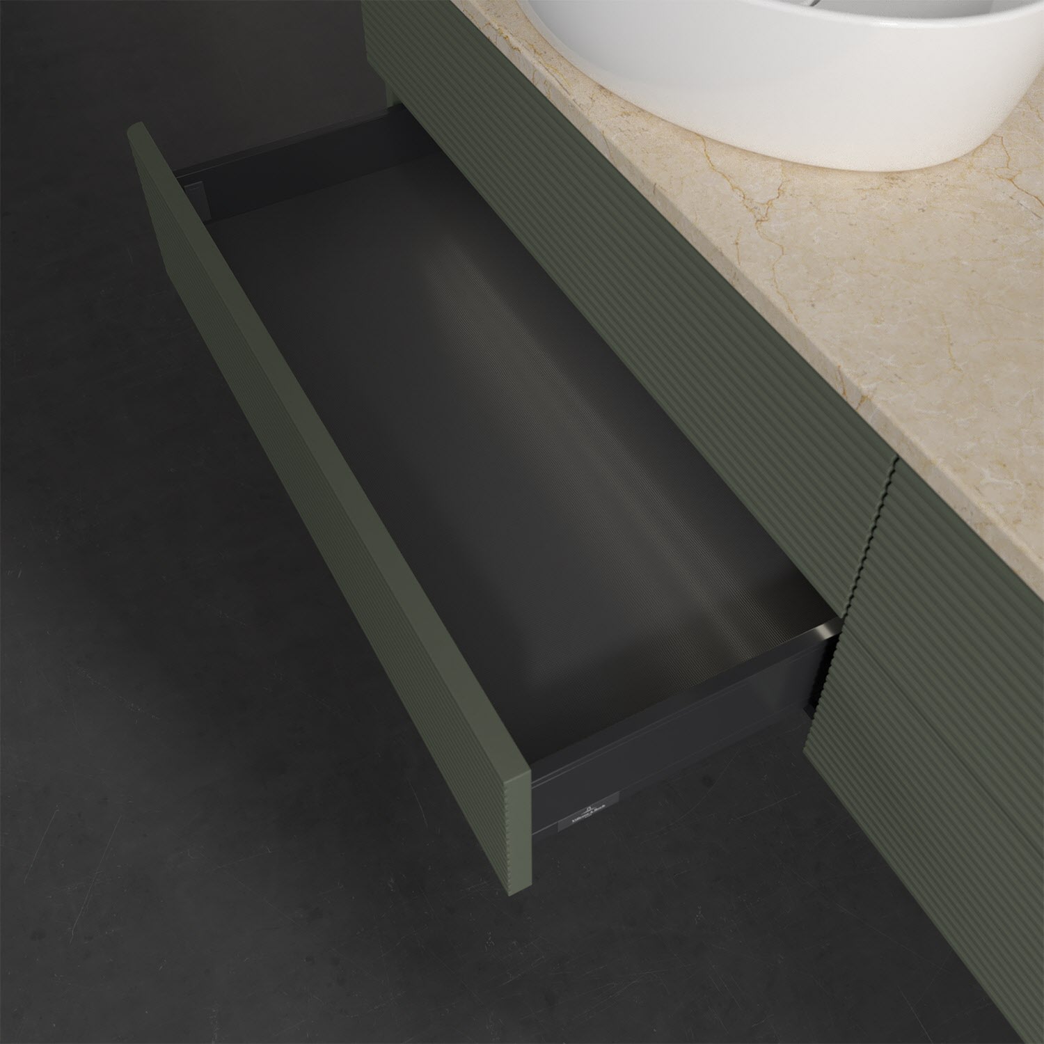 - kein Umfallen oder Verrutschen von Pflegeprodukten in den Schubladen dank rutschhemmendem Boden