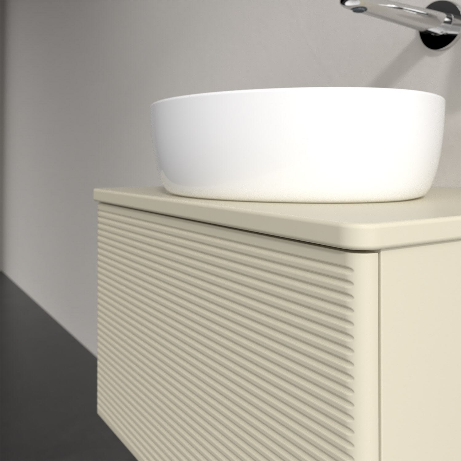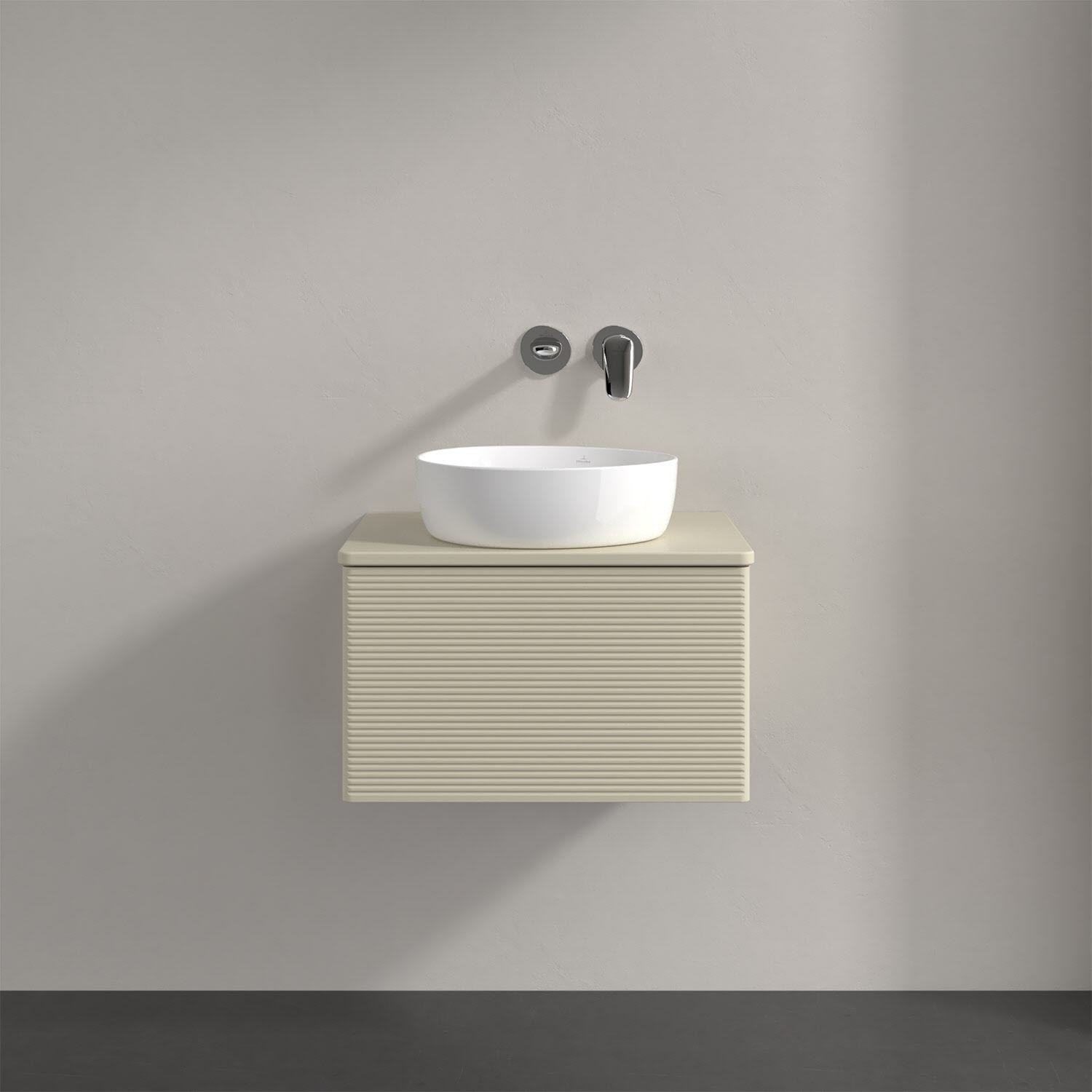 Für diesen Waschbeckenunterschrank stehen Ihnen Aufsatzwaschtische aus verschiedenen Serien zur Verfügung (siehe "Passliste" unter Downloads). Ein ausgewähltes Beispiel finden Sie im Zubehör. Den Waschtisch bitte separat mitbestellen.