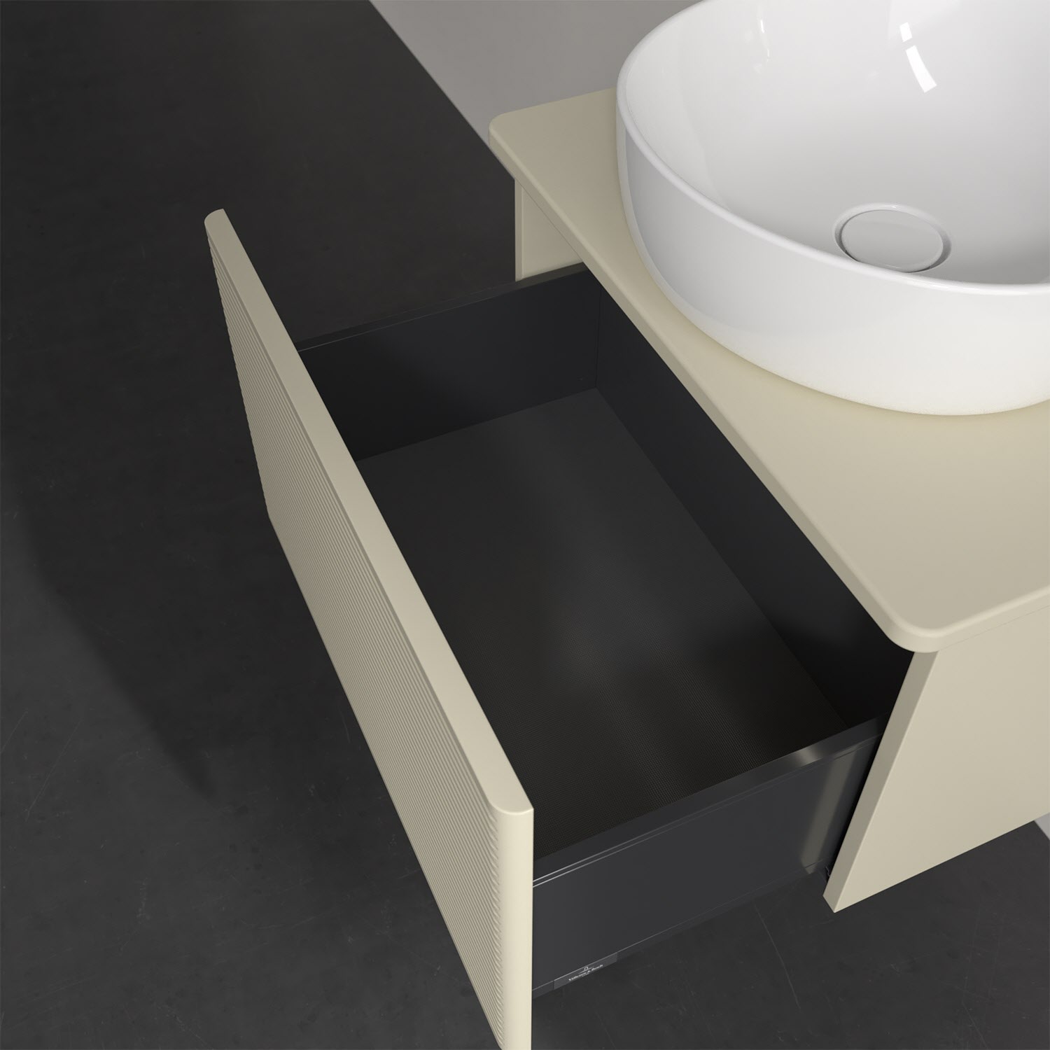 Villeroy & Boch Antao Waschbeckenunterschrank, 60 x 36 cm, 1 Auszug mit LED-Licht, Front mit Struktur, ohne Hahnloch