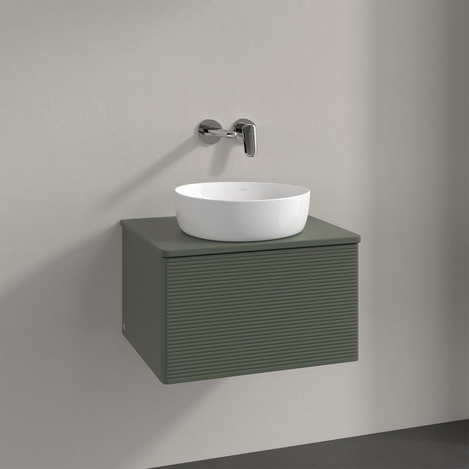 Villeroy & Boch Antao Waschbeckenunterschrank, 60 x 36 cm, 1 Auszug mit LED-Licht, Front mit Struktur, ohne Hahnloch