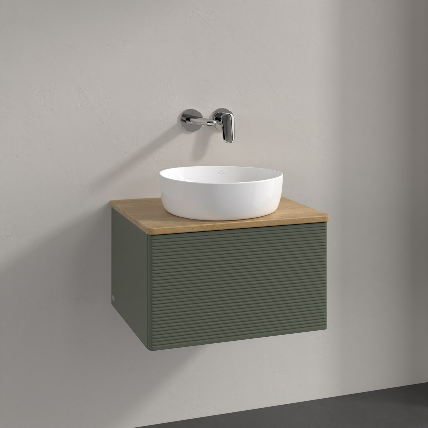 Villeroy & Boch Antao Waschbeckenunterschrank, 60 x 36 cm, 1 Auszug mit LED-Licht, Front mit Struktur, ohne Hahnloch