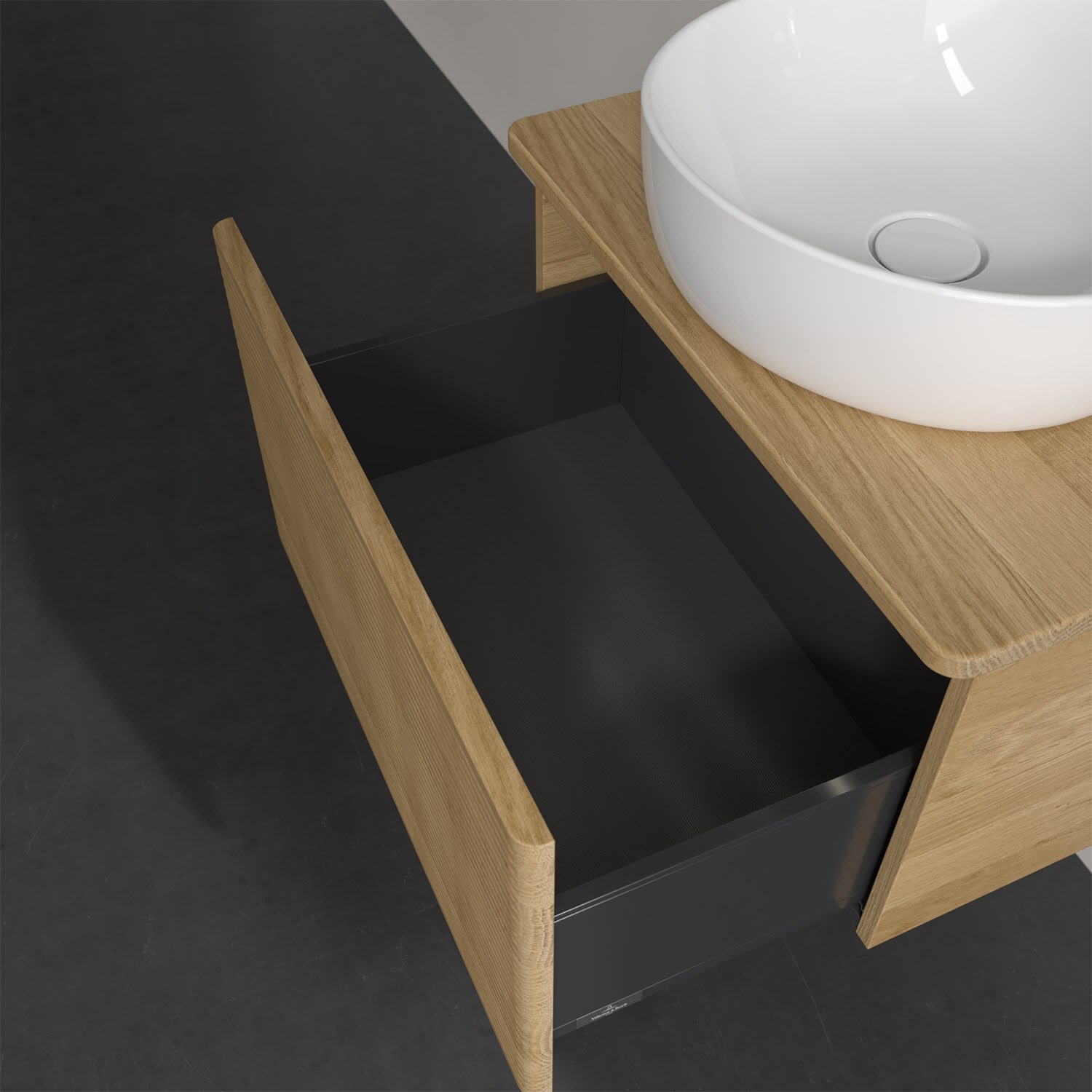 Wenig Platz im Badezimmer und dennoch soll es gemütlich und ordentlich sein? Dann ist der wandhängende Antao Waschtischunterschrank mit seinen sanft abgerundeten Kanten die ideale Lösung. Das geräumige Möbel bietet ausreichend Stauraum für alle nötigen Badutensilien. Zum Öffnen genügt dank der Push-to-Open Funktion ein leichter Druck auf den extra hohen Auszug mit strukturierter Front, der sich dann in seiner vollen Tiefe öffnet. Dabei wird gleichzeitig die angenehme Auszugsbeleuchtung in Warmweiß aktiviert. Das garantiert den benötigen Überblick! Praktisch ist auch der integrierte Antirutschboden und die SoftClosing Funktion, die ein Umfallen oder Verrutschen der verstauten Produkte verhindern. Villeroy & Boch hat alles durchdacht! Für eine besonders leichte Pflege sorgt die mehrschichtig deckend lackierte Oberfläche. Bei der Ausführung in Massivholz wird dank des verarbeiteten Massivholzes jedes Möbel zu einem Unikat, das sich durch das lebendige Naturmaterial durch seine einzigartige Struktur und Maserung auszeichnet.