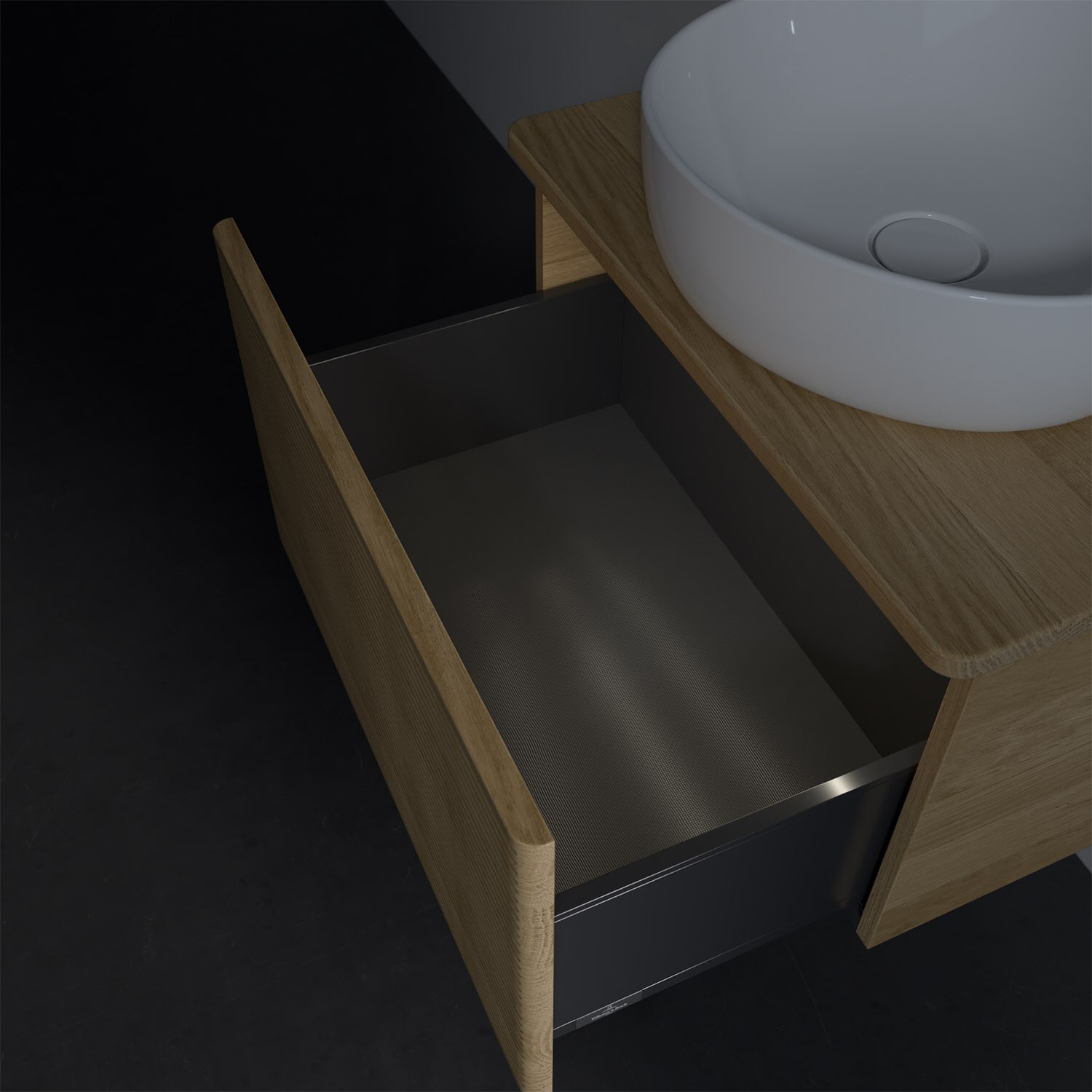 Villeroy & Boch Antao Waschbeckenunterschrank, 60 x 36 cm, 1 Auszug mit LED-Licht, Front mit Struktur, ohne Hahnloch