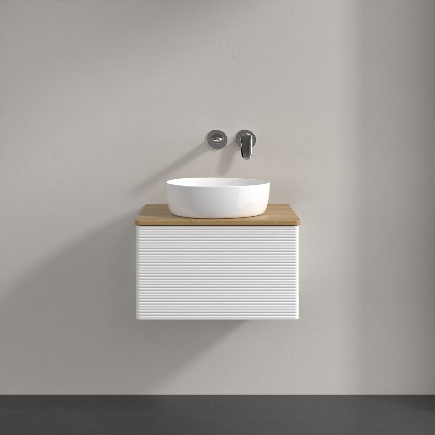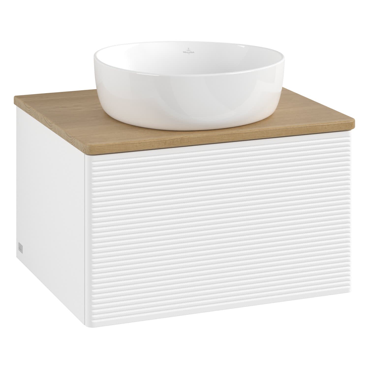 Villeroy & Boch Antao Waschbeckenunterschrank, 60 x 36 cm, 1 Auszug mit LED-Licht, Front mit Struktur, ohne Hahnloch
