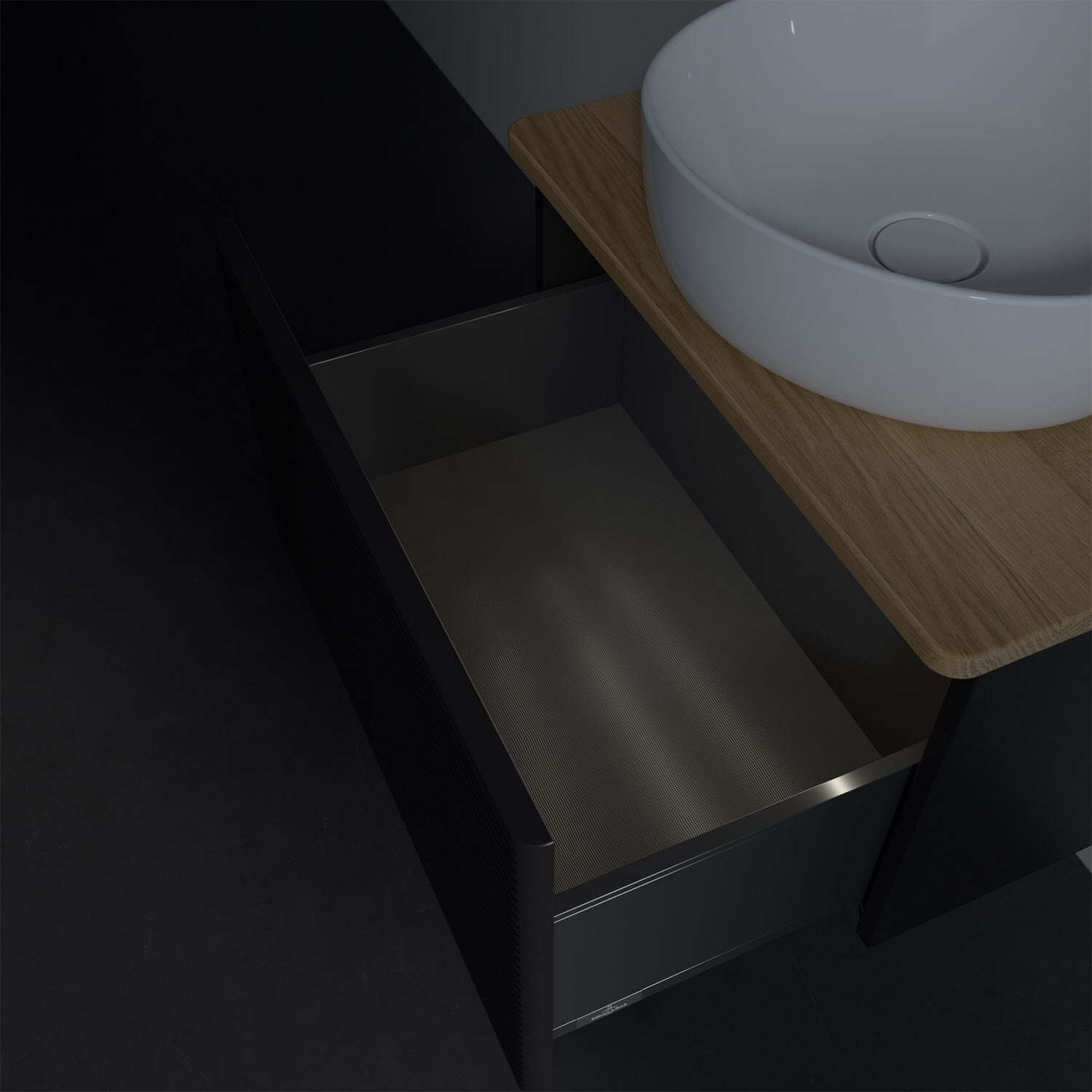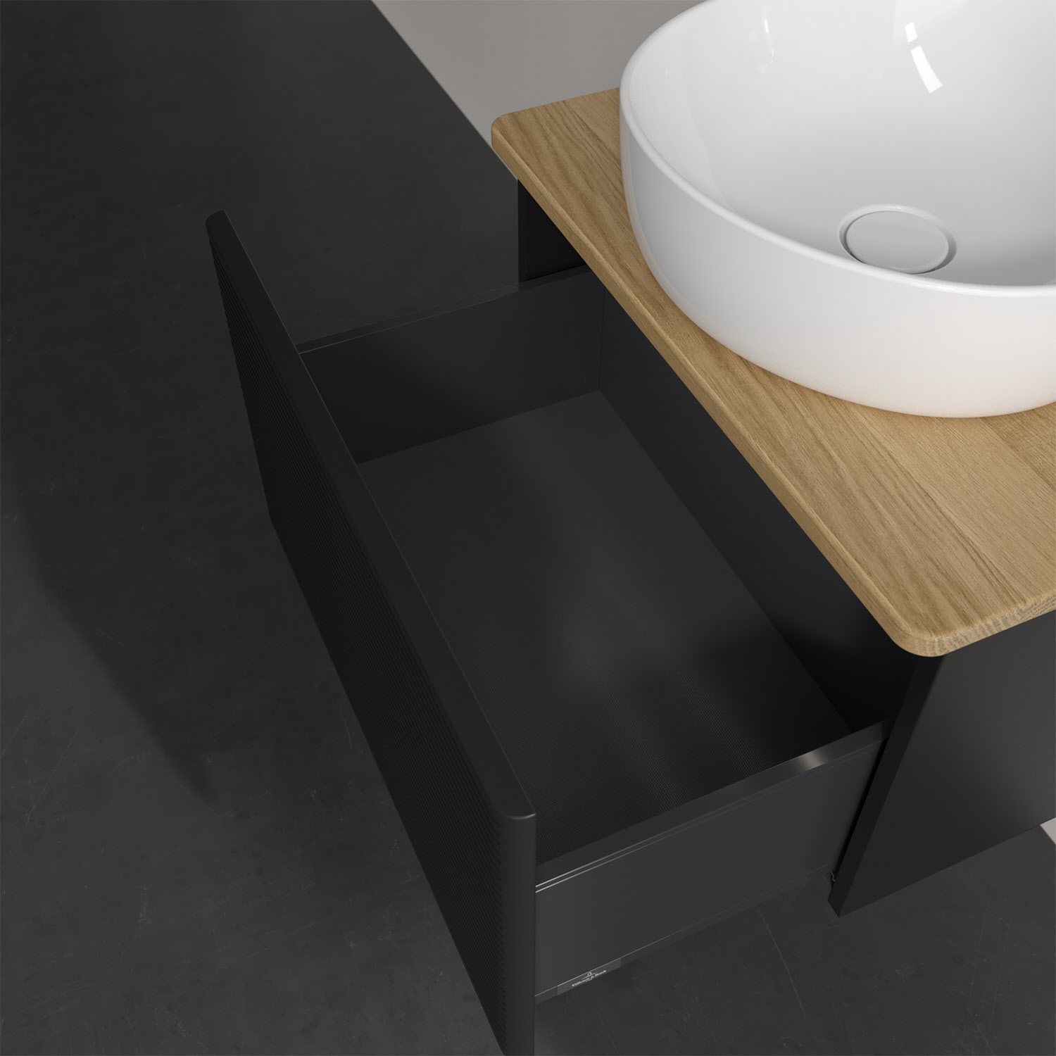 Villeroy & Boch Antao Waschbeckenunterschrank, 60 x 36 cm, 1 Auszug mit LED-Licht, Front mit Struktur, ohne Hahnloch
