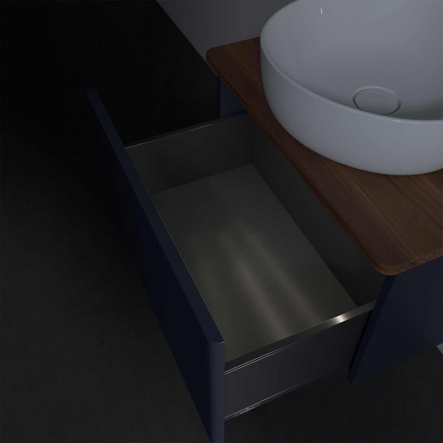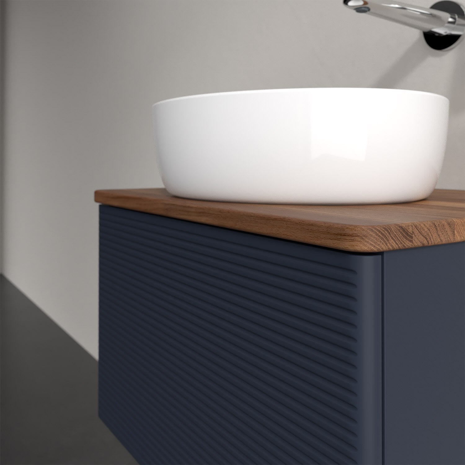 Wenig Platz im Badezimmer und dennoch soll es gemütlich und ordentlich sein? Dann ist der wandhängende Antao Waschtischunterschrank mit seinen sanft abgerundeten Kanten die ideale Lösung. Das geräumige Möbel bietet ausreichend Stauraum für alle nötigen Badutensilien. Zum Öffnen genügt dank der Push-to-Open Funktion ein leichter Druck auf den extra hohen Auszug mit strukturierter Front, der sich dann in seiner vollen Tiefe öffnet. Dabei wird gleichzeitig die angenehme Auszugsbeleuchtung in Warmweiß aktiviert. Das garantiert den benötigen Überblick! Praktisch ist auch der integrierte Antirutschboden und die SoftClosing Funktion, die ein Umfallen oder Verrutschen der verstauten Produkte verhindern. Villeroy & Boch hat alles durchdacht! Für eine besonders leichte Pflege sorgt die mehrschichtig deckend lackierte Oberfläche. Bei der Ausführung in Massivholz wird dank des verarbeiteten Massivholzes jedes Möbel zu einem Unikat, das sich durch das lebendige Naturmaterial durch seine einzigartige Struktur und Maserung auszeichnet.