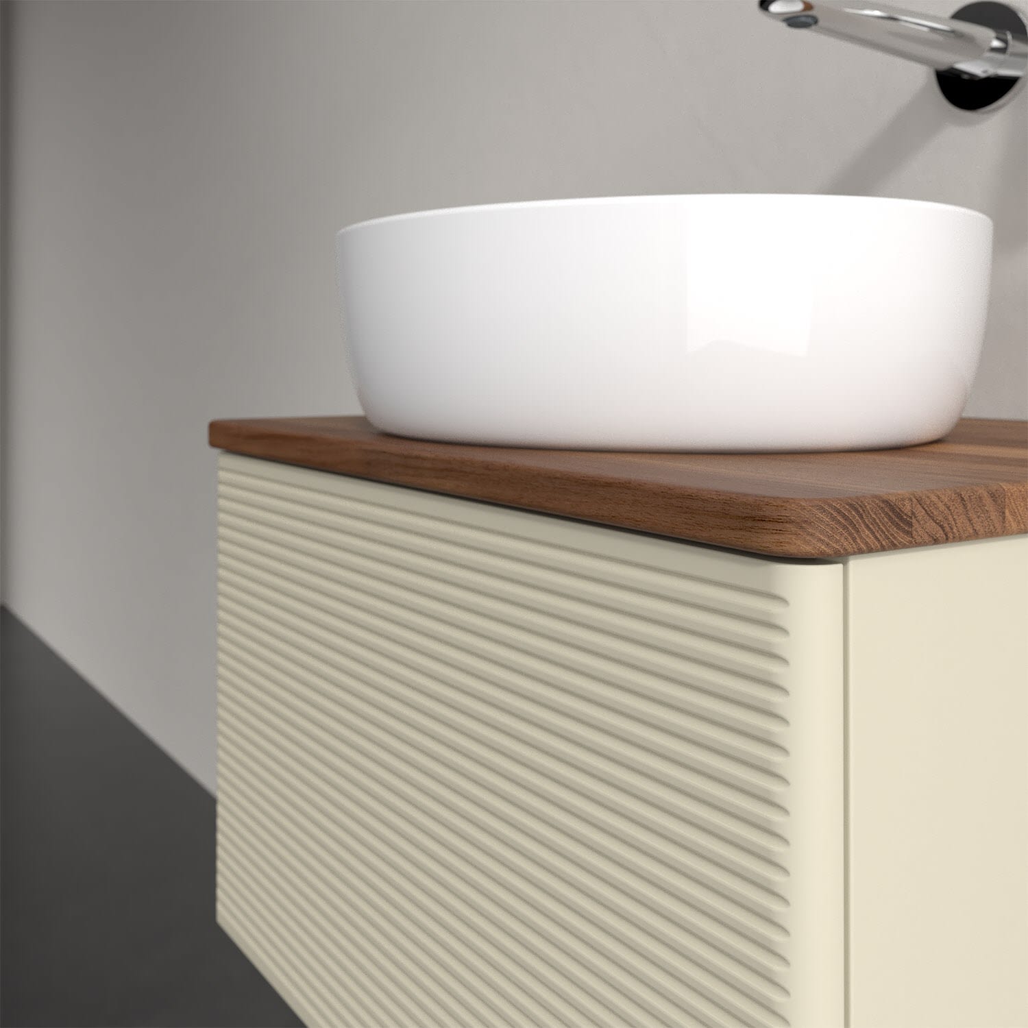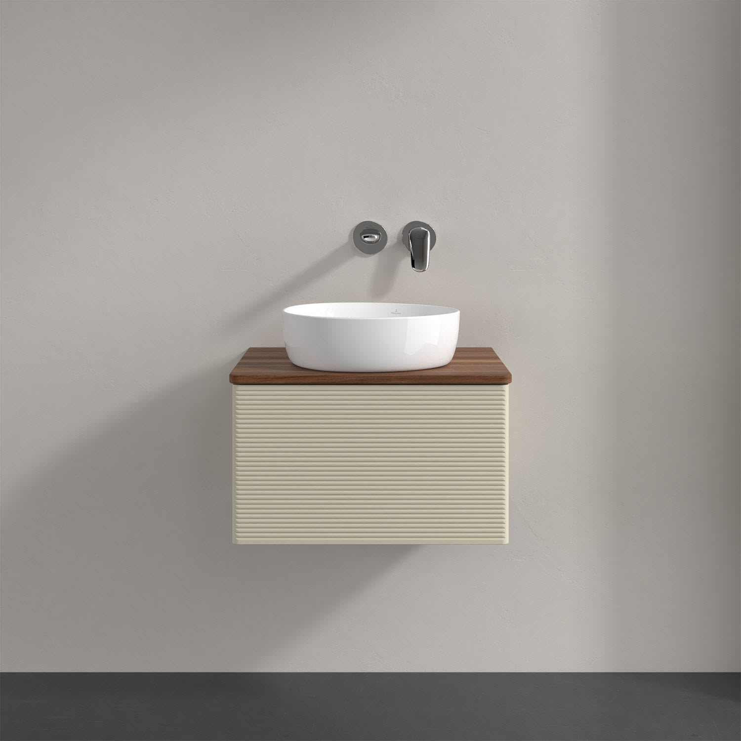 Für diesen Waschbeckenunterschrank stehen Ihnen Aufsatzwaschtische aus verschiedenen Serien zur Verfügung (siehe "Passliste" unter Downloads). Ein ausgewähltes Beispiel finden Sie im Zubehör. Den Waschtisch bitte separat mitbestellen.