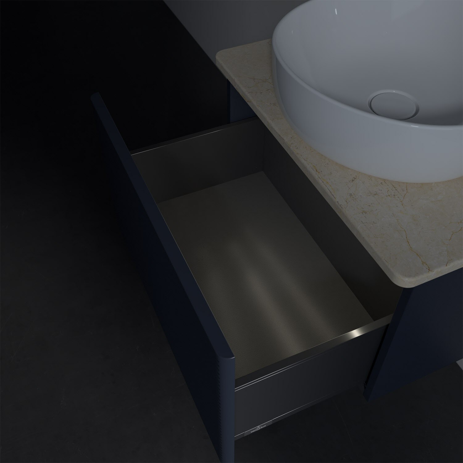 Villeroy & Boch Antao Waschbeckenunterschrank, 60 x 36 cm, 1 Auszug mit LED-Licht, Front mit Struktur, ohne Hahnloch