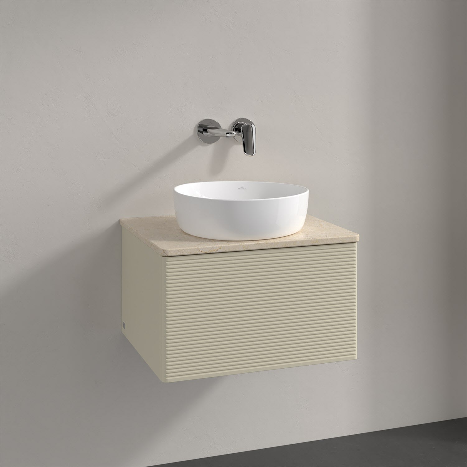 Villeroy & Boch Antao Waschbeckenunterschrank, 60 x 36 cm, 1 Auszug mit LED-Licht, Front mit Struktur, ohne Hahnloch