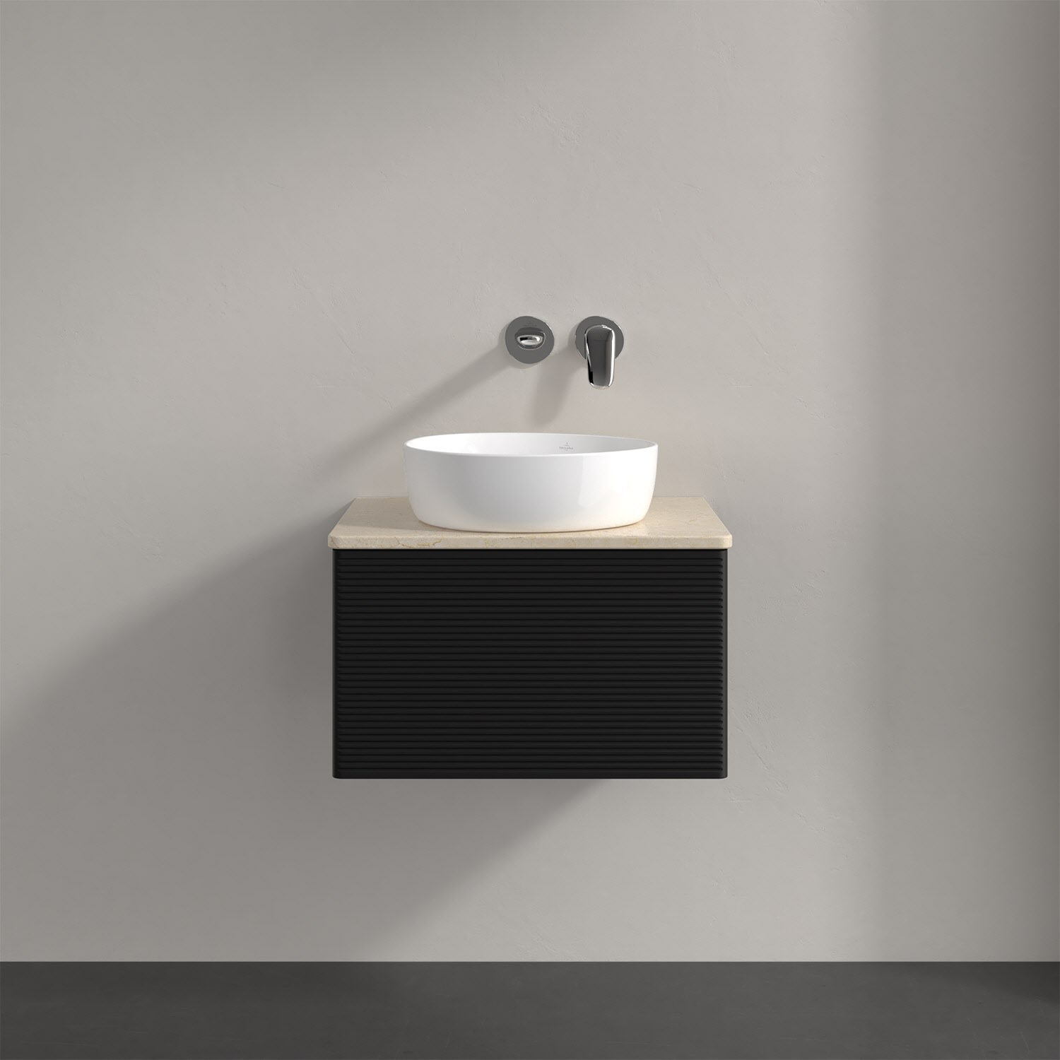 Villeroy & Boch Antao Waschbeckenunterschrank, 60 x 36 cm, 1 Auszug mit LED-Licht, Front mit Struktur, ohne Hahnloch
