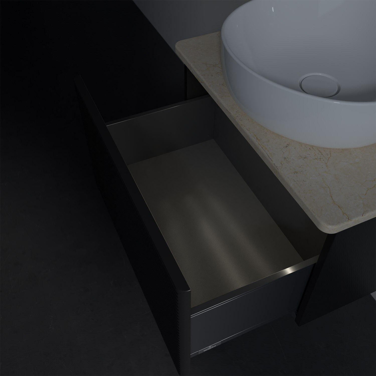 - kein Umfallen oder Verrutschen von Pflegeprodukten in den Schubladen dank rutschhemmendem Boden
