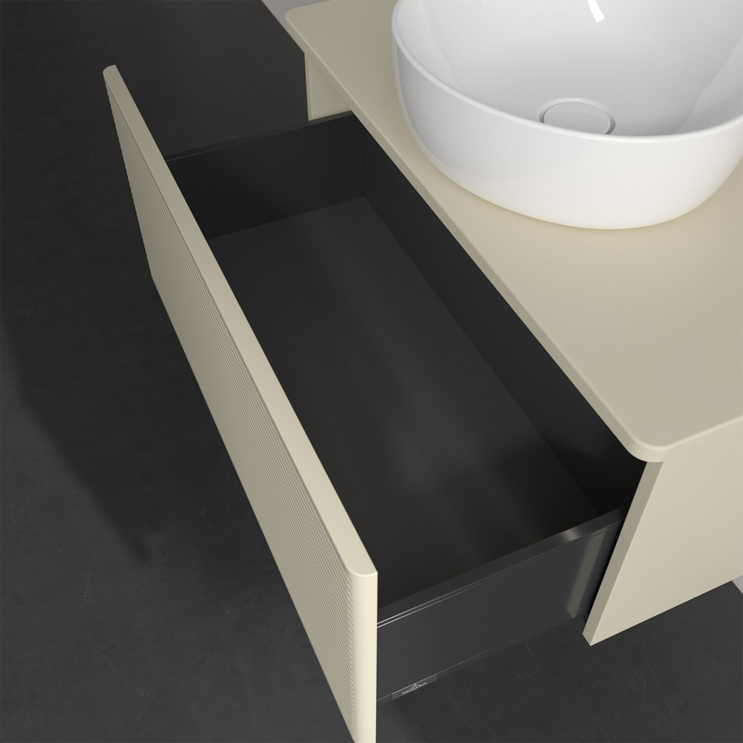 Villeroy & Boch Antao Waschbeckenunterschrank, 80 x 36 cm, 1 Auszug mit LED-Licht, Front mit Struktur, ohne Hahnloch