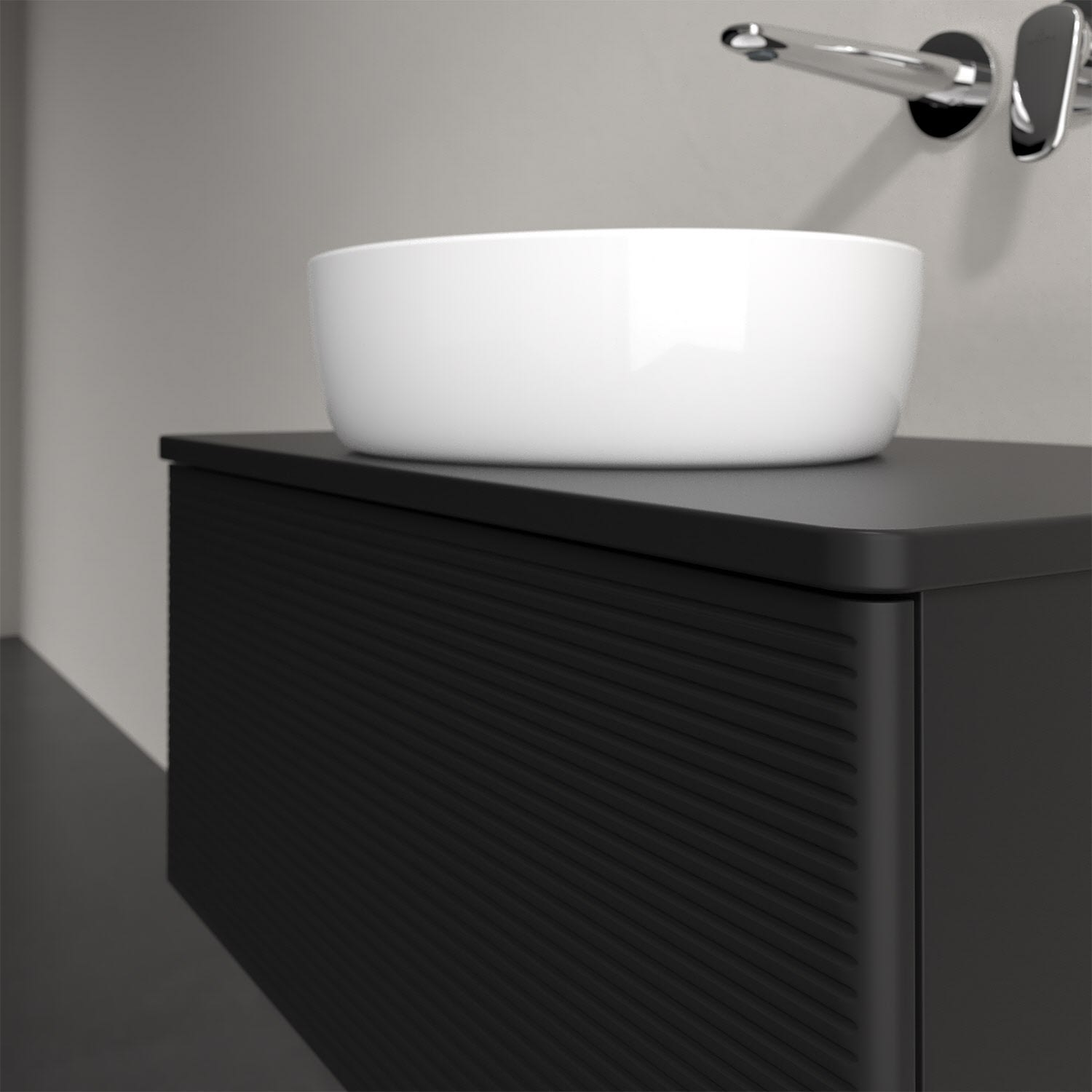 Für diesen Waschbeckenunterschrank stehen Ihnen Aufsatzwaschtische aus verschiedenen Serien zur Verfügung (siehe "Passliste" unter Downloads). Ein ausgewähltes Beispiel finden Sie im Zubehör. Den Waschtisch bitte separat mitbestellen.