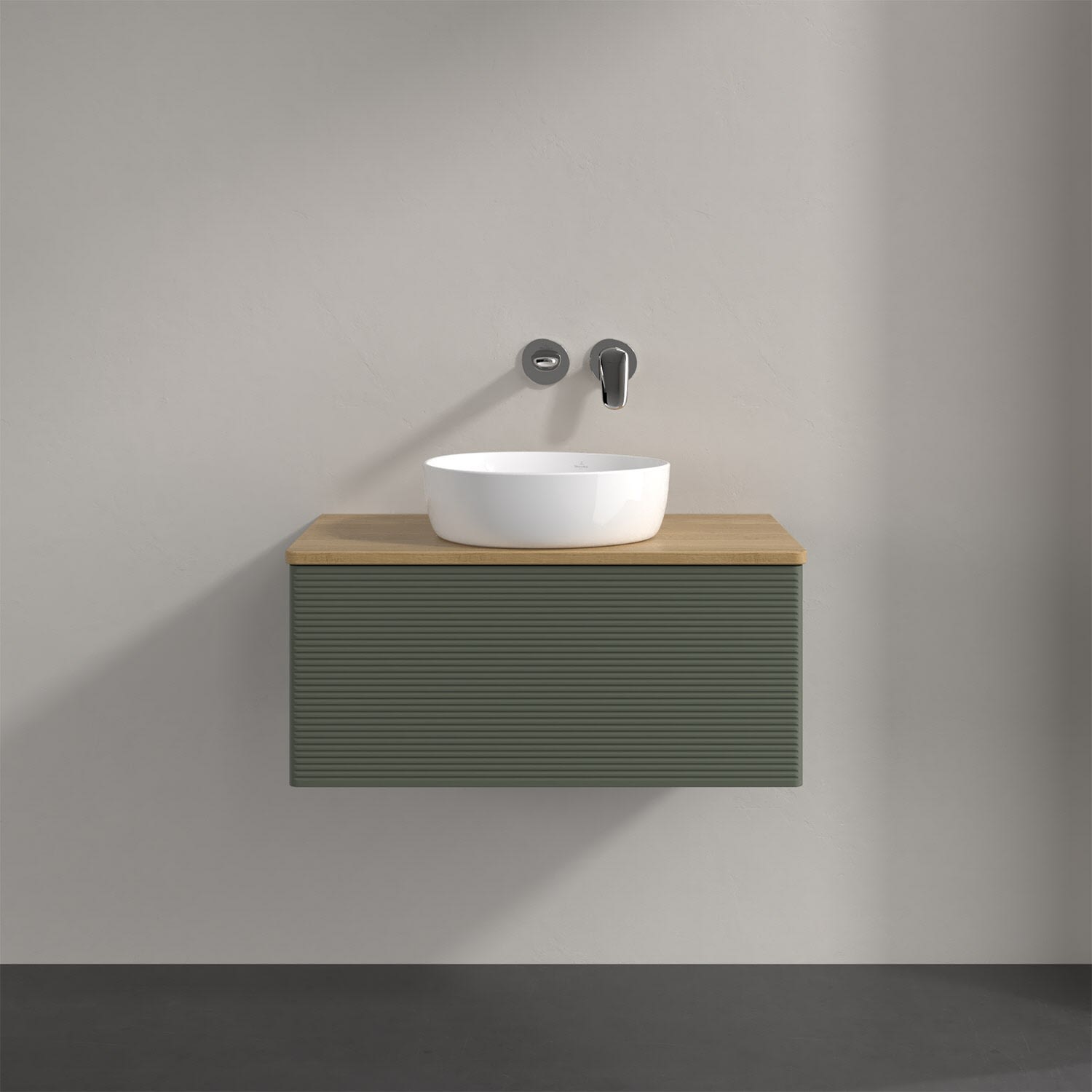 Villeroy & Boch Antao Waschbeckenunterschrank, 80 x 36 cm, 1 Auszug mit LED-Licht, Front mit Struktur, ohne Hahnloch